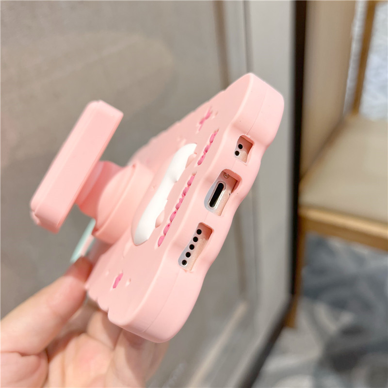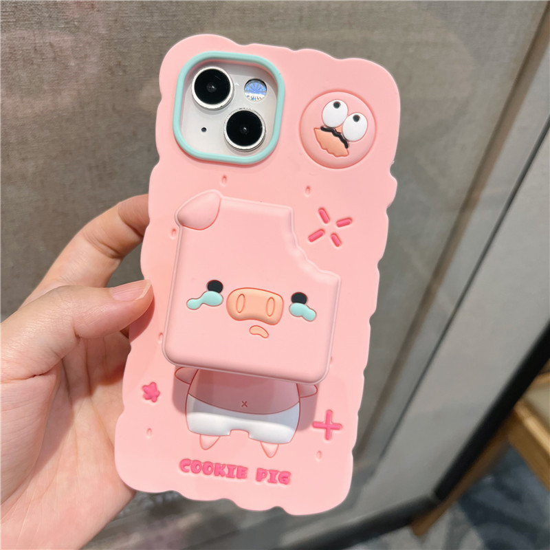 立體粉色小豬蘋果13手機殼方形豬頭伸縮支架情侶女款創意個性卡通可愛硅膠秋冬款小眾iphone14promax保護套