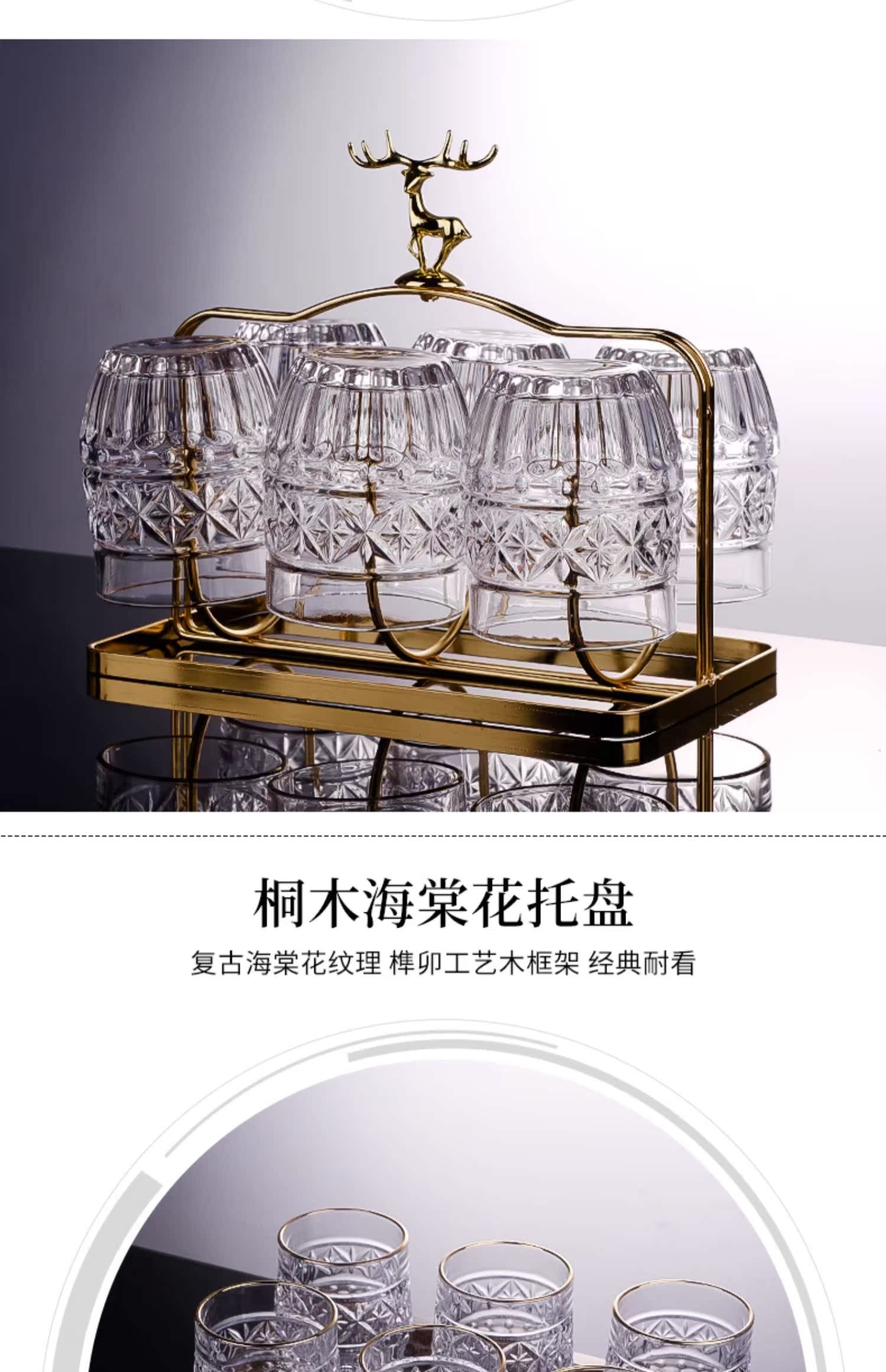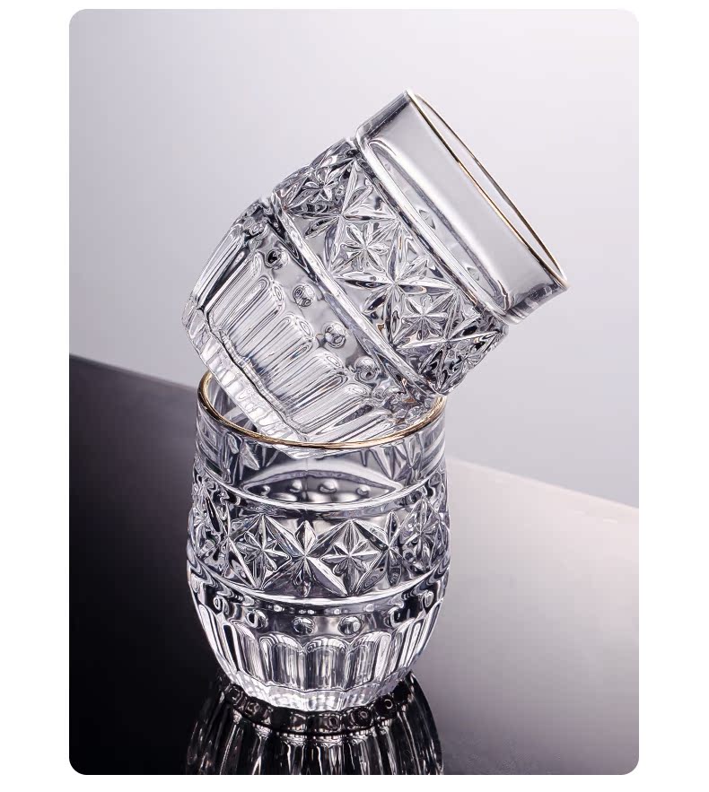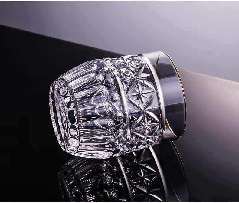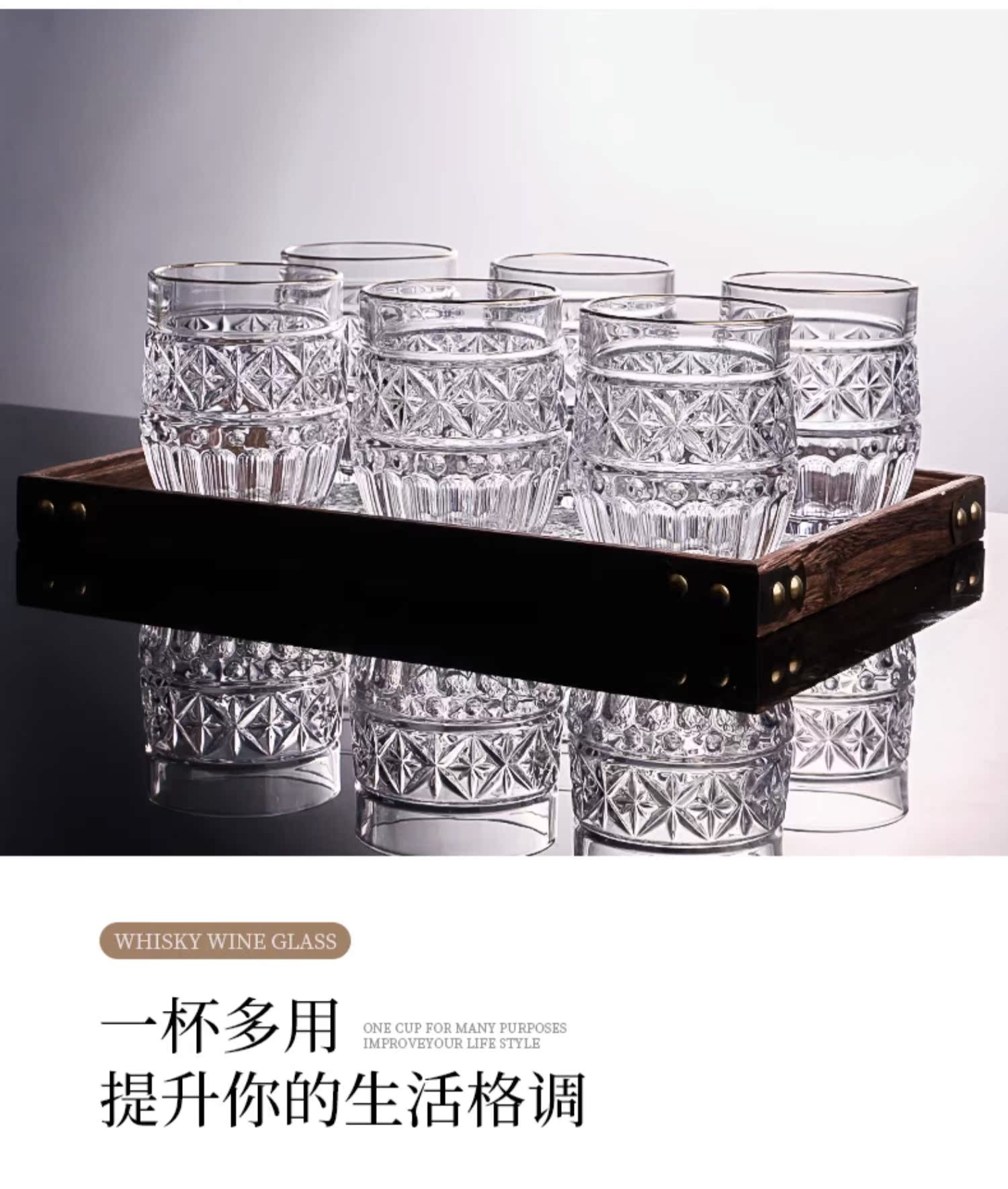 輕奢古典威士忌酒杯描金水晶洋酒杯家用玻璃杯酒吧創意果汁啤酒杯