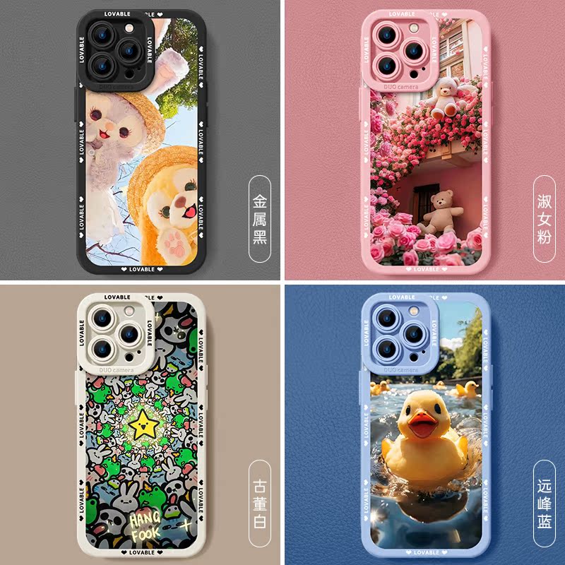 酷圖適用iPhone14手機殼新款蘋果15pormax液態硅膠13防摔12鏡頭全包高級感11情侶男女款plus簡約小眾卡通花熊