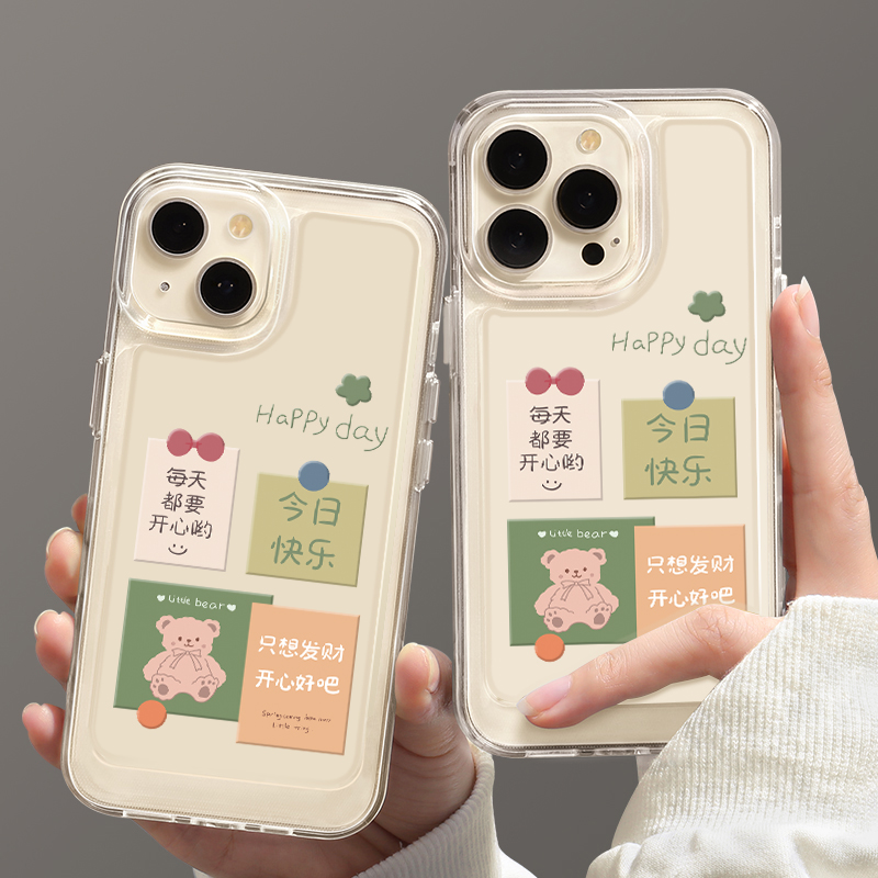 適用iphone14promax手機殼蘋果13全包11簡約小眾12網紅女款XSmax韓風新款xr硅膠十三Pro爆款love小熊手潮機套