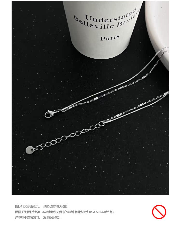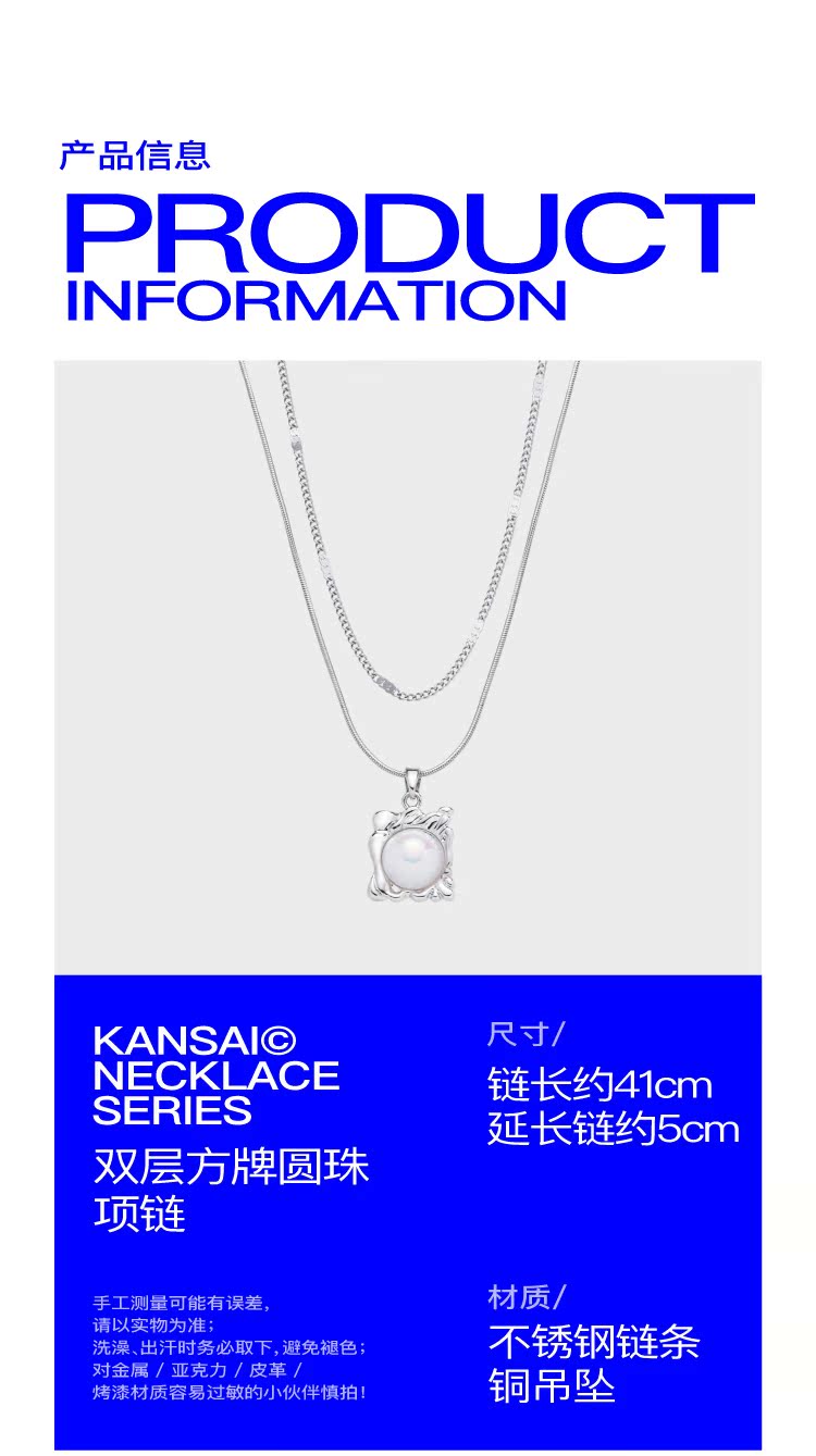 KANSAI雙層方牌圓珠項鏈小眾個性冷淡風ins酷潮2023新款爆款配飾