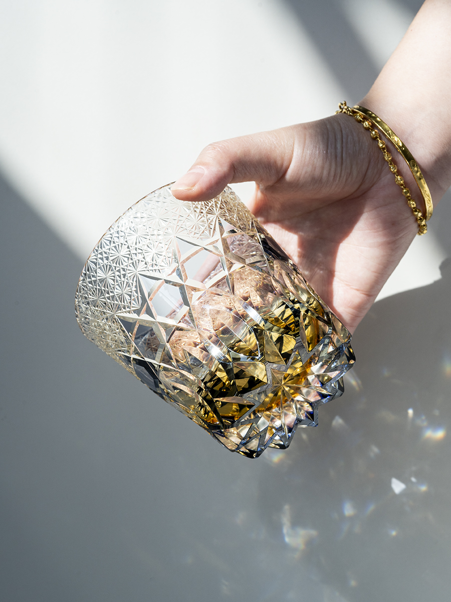 江戶切子輕奢高級感水晶威士忌酒杯七夕禮物星脈手工切子杯禮盒裝