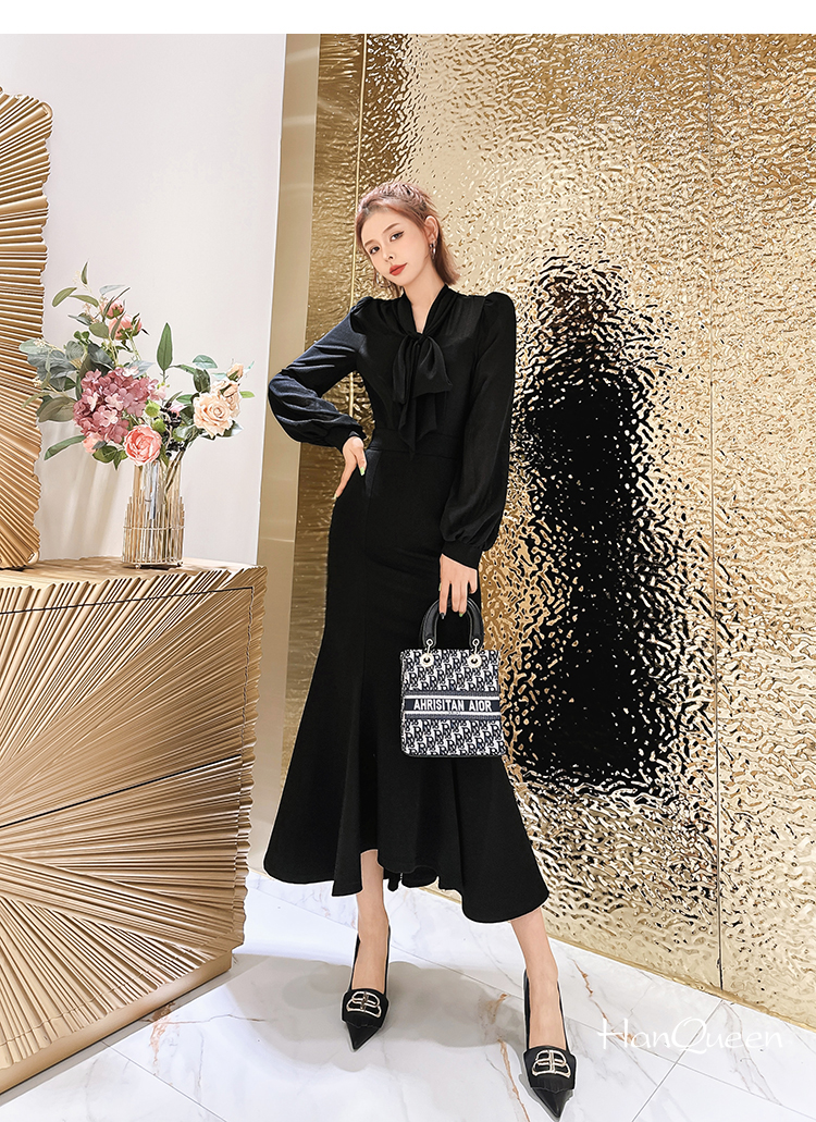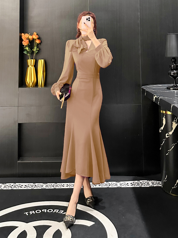 魚尾晚禮服裙女高貴氣質驚艷高檔修身高端宴會高級質感長袖連衣裙
