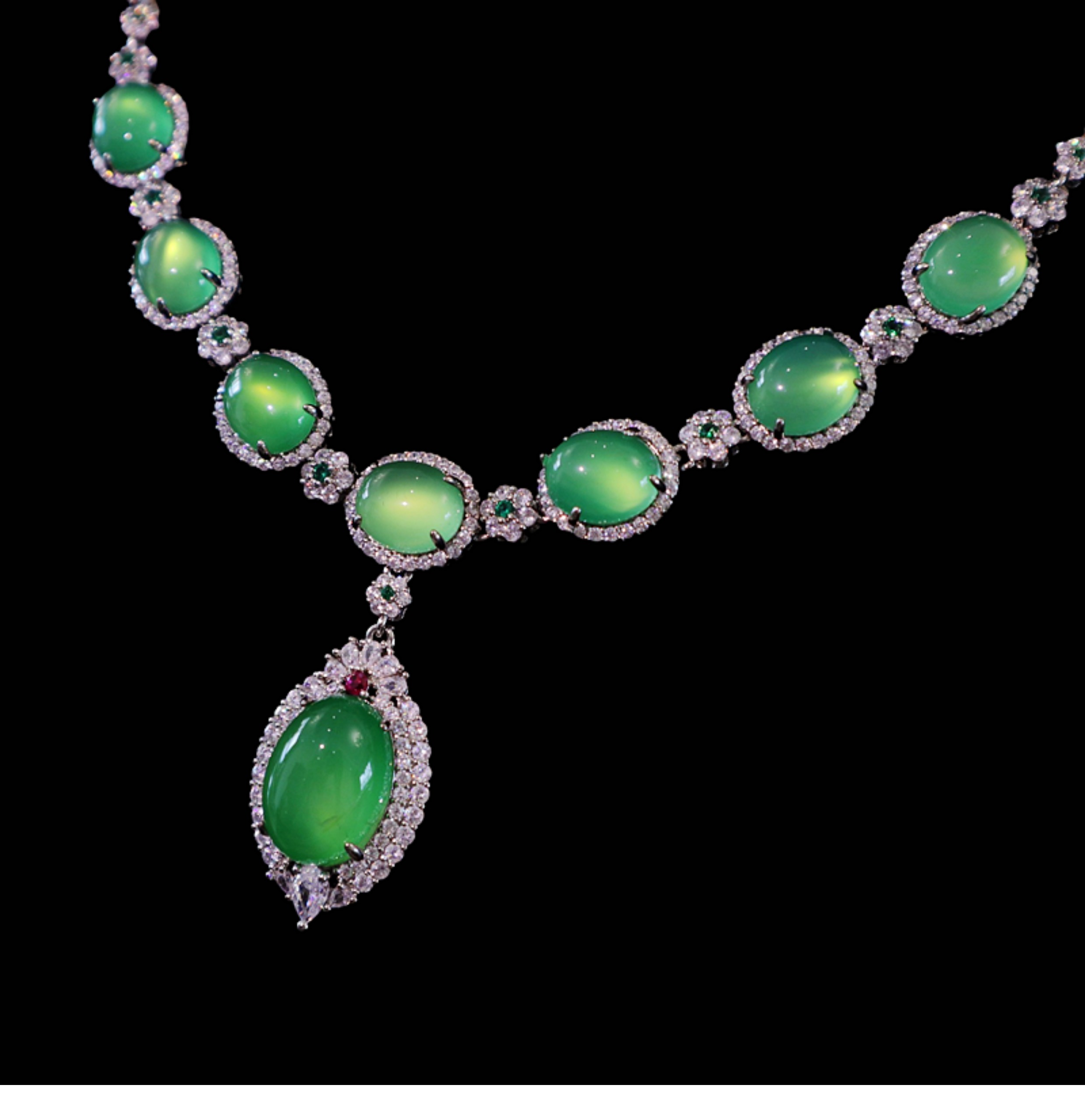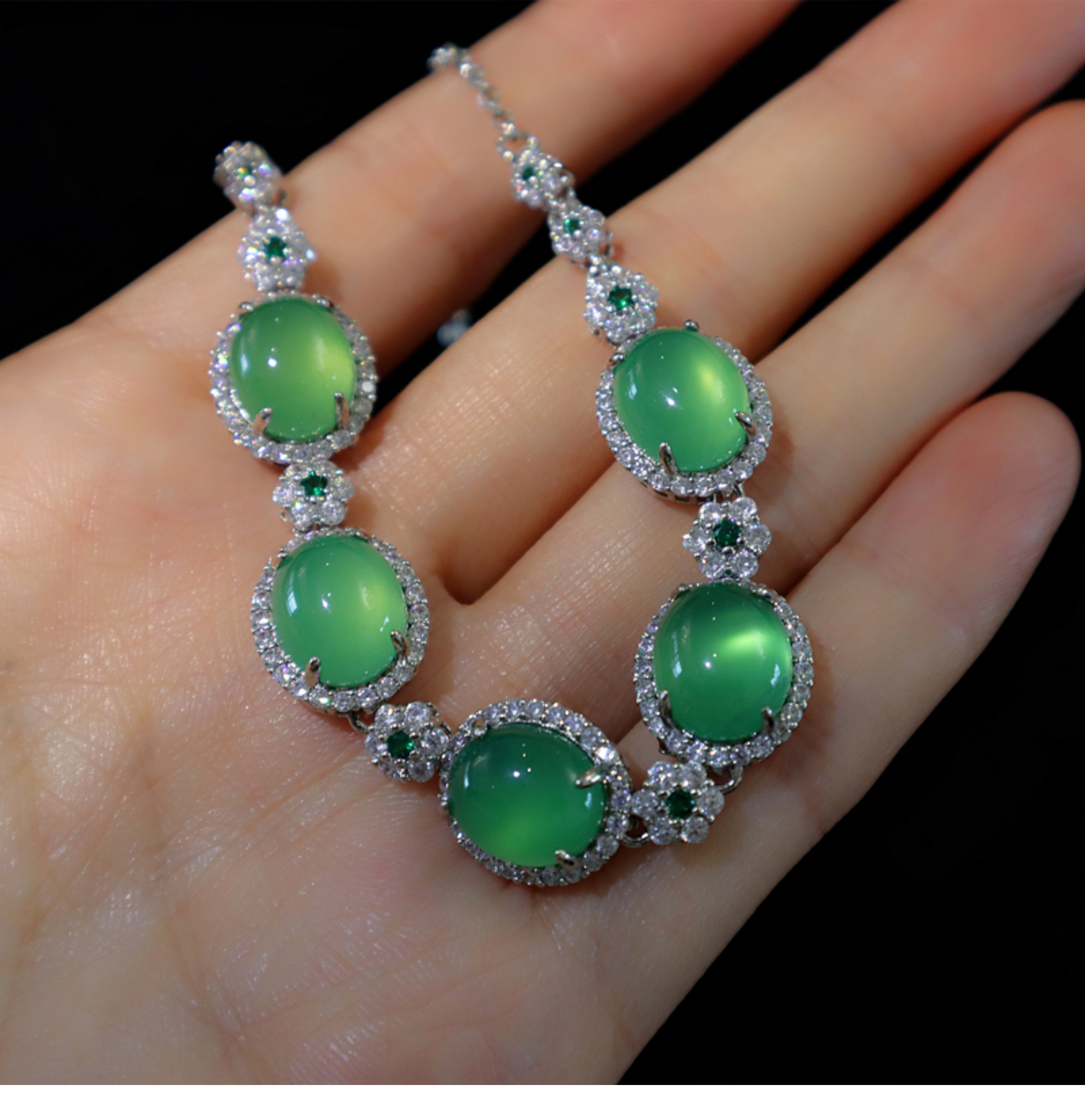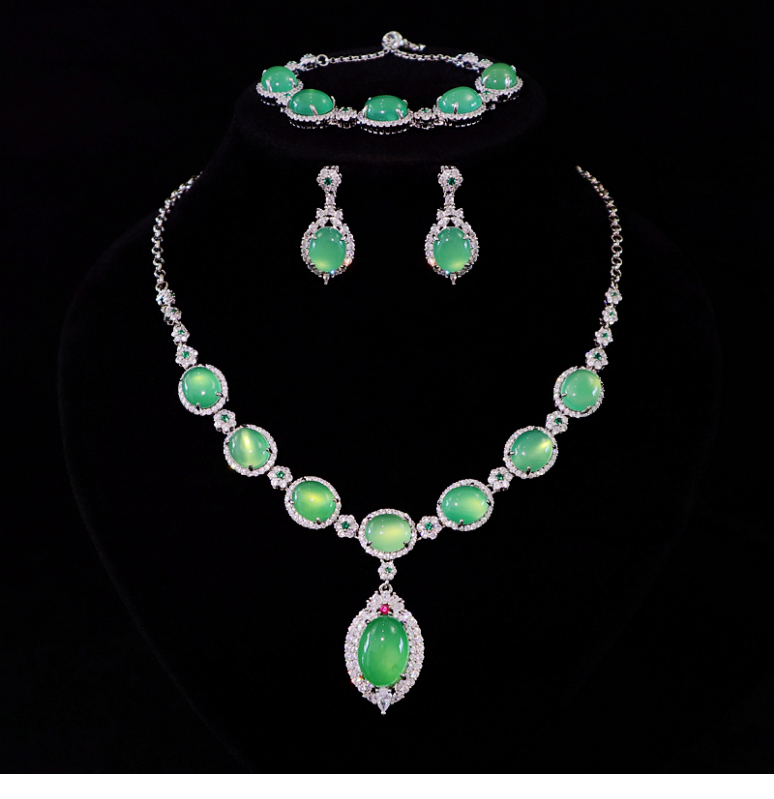 綠玉髓吊墜項鏈指耳墜手鏈套裝晚宴珠寶新娘結婚首飾婚紗禮服配飾