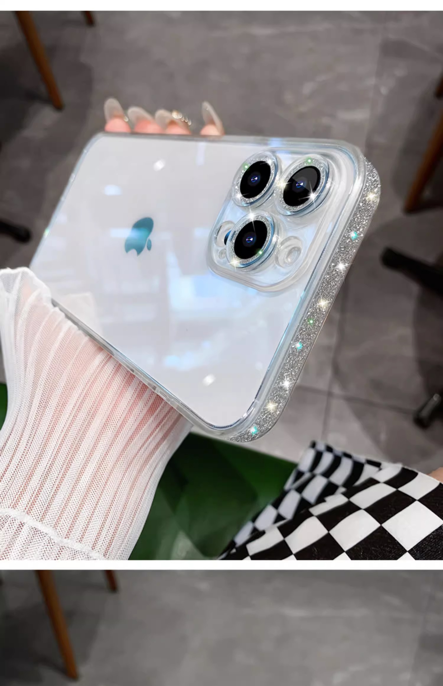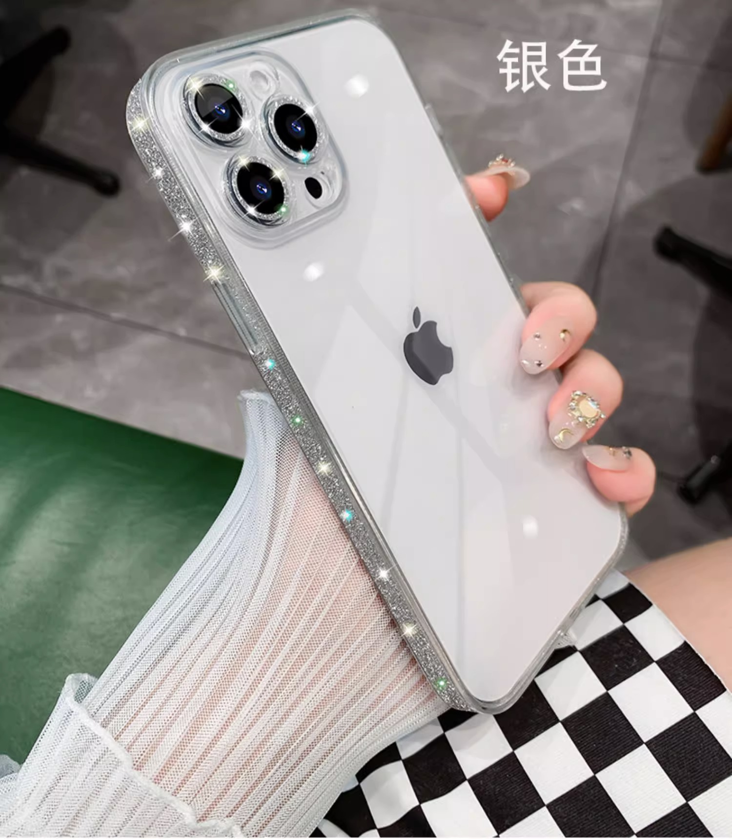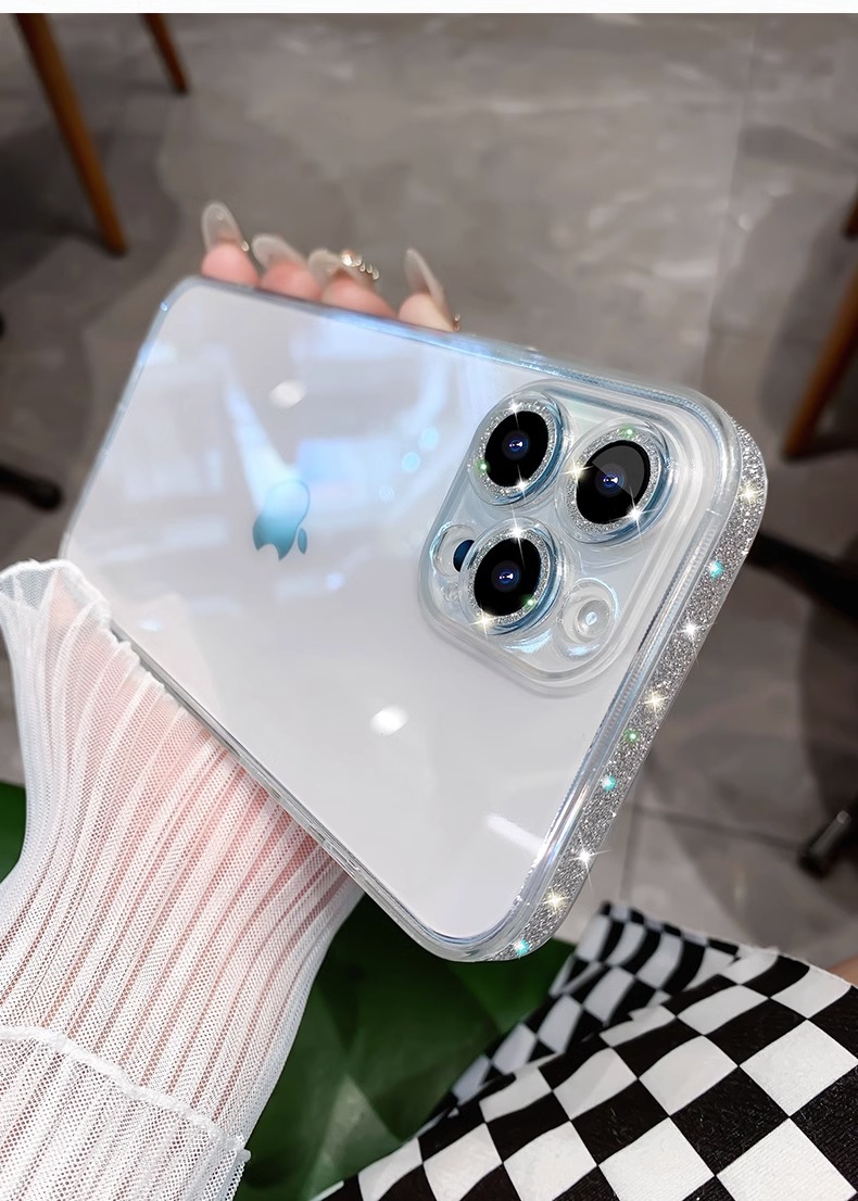 酷圖適用蘋果15pro閃粉奢華手機殼女iphone14promax透明保護套帶鏡頭膜plus全包超薄防摔13時尚新款12高級感