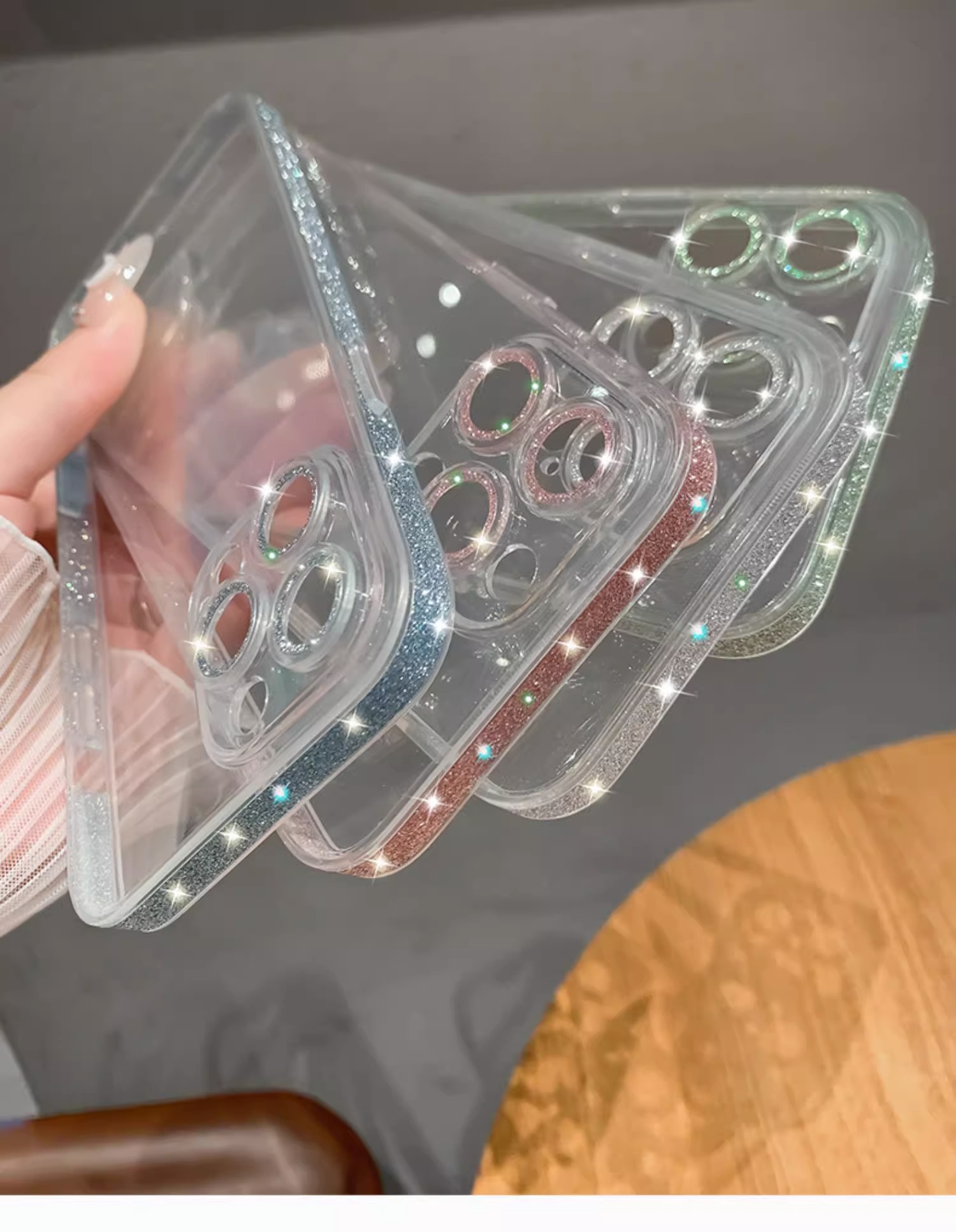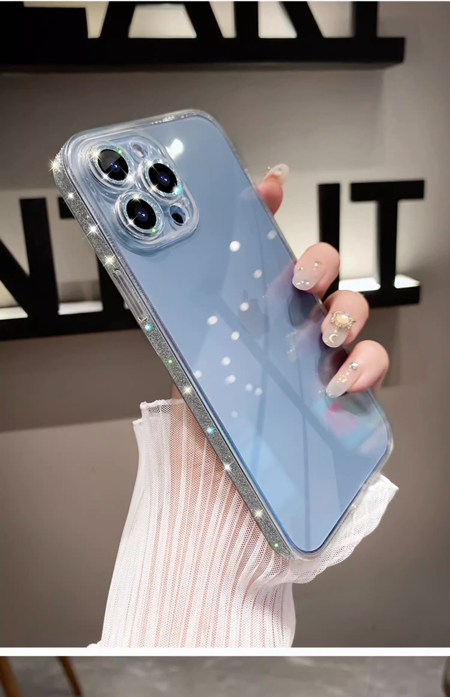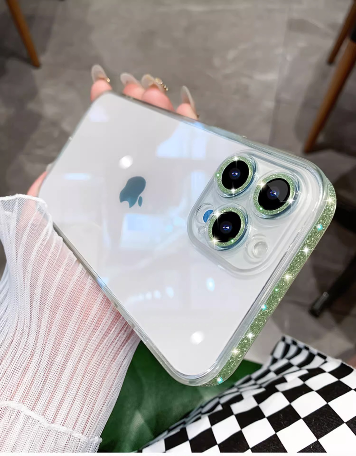 酷圖適用蘋果15pro閃粉奢華手機殼女iphone14promax透明保護套帶鏡頭膜plus全包超薄防摔13時尚新款12高級感