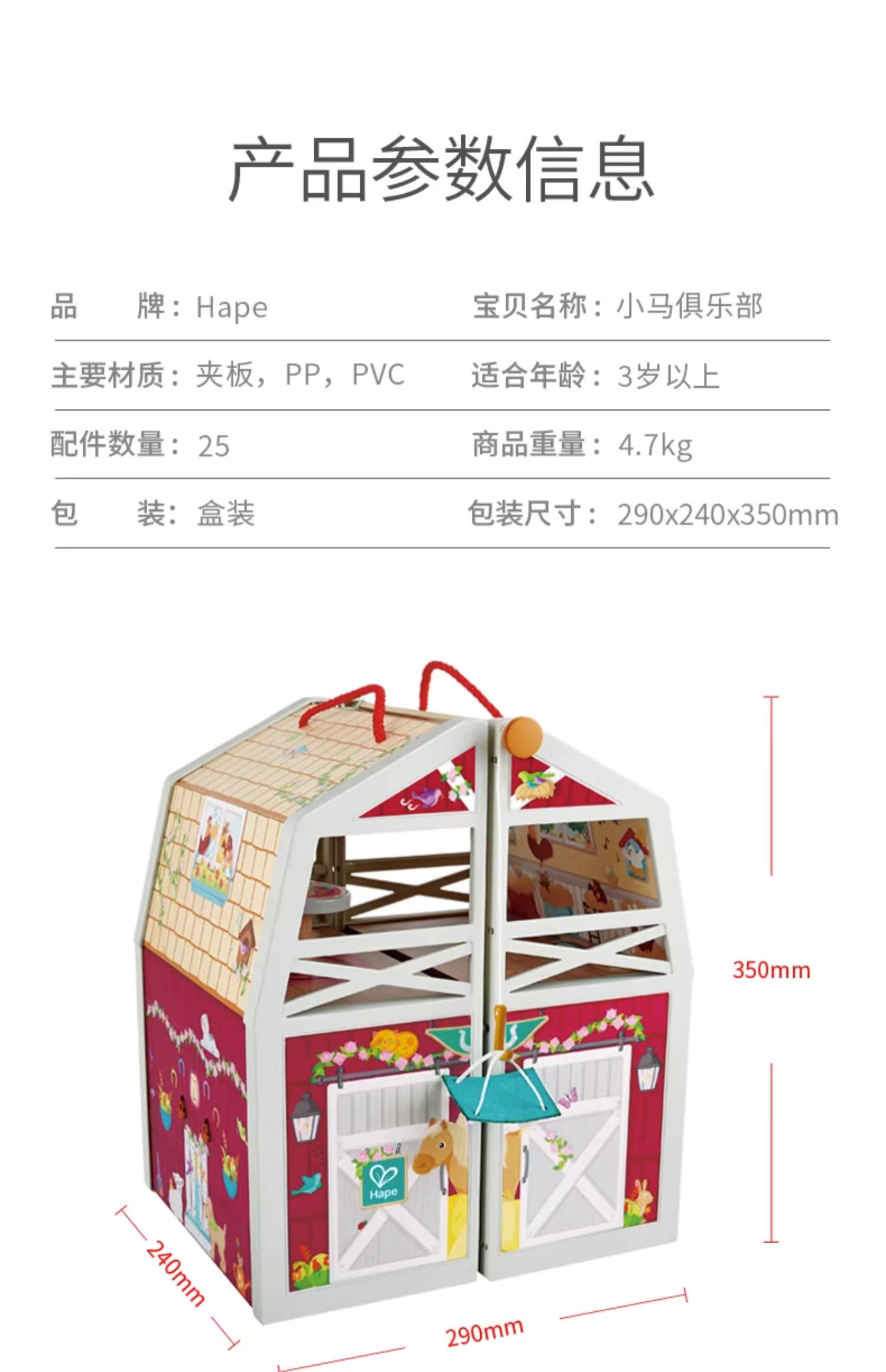 Hape小馬俱樂部兒童寶寶仿真過家家益智玩具動物小屋模型拼裝3歲+