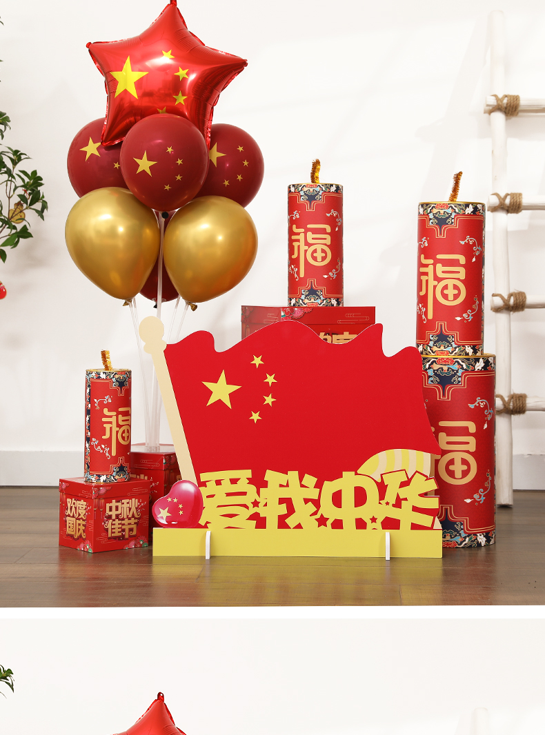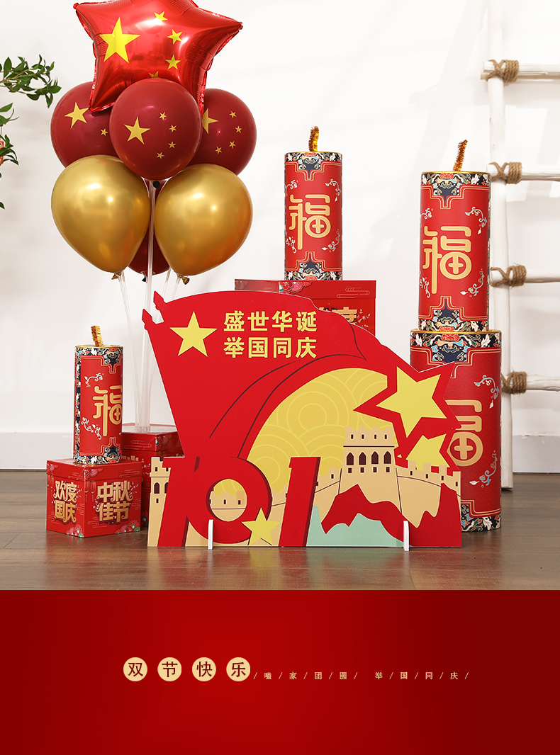 中秋國慶節創意國慶主體禮盒鞭炮地堆擺件商場超市活動場景布置