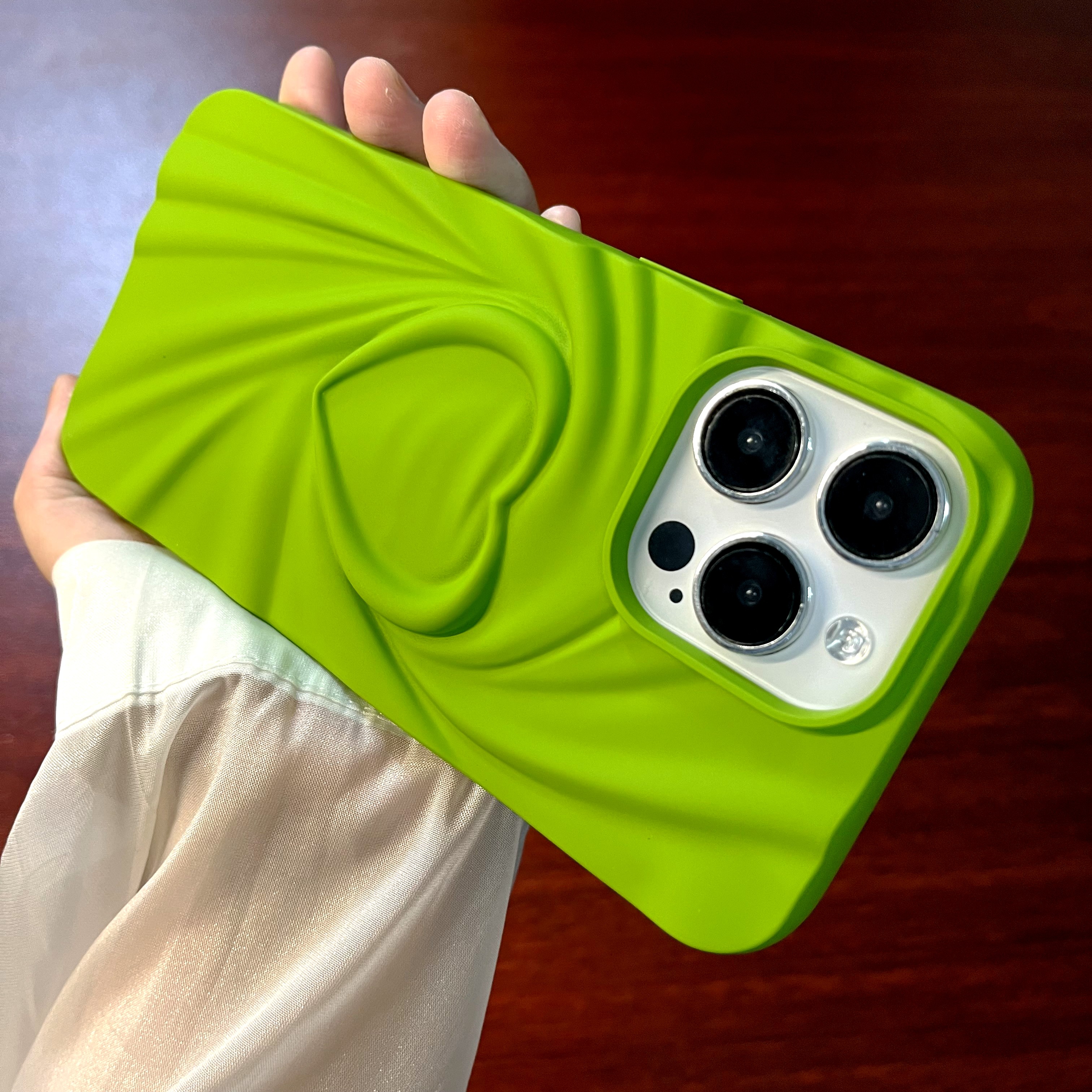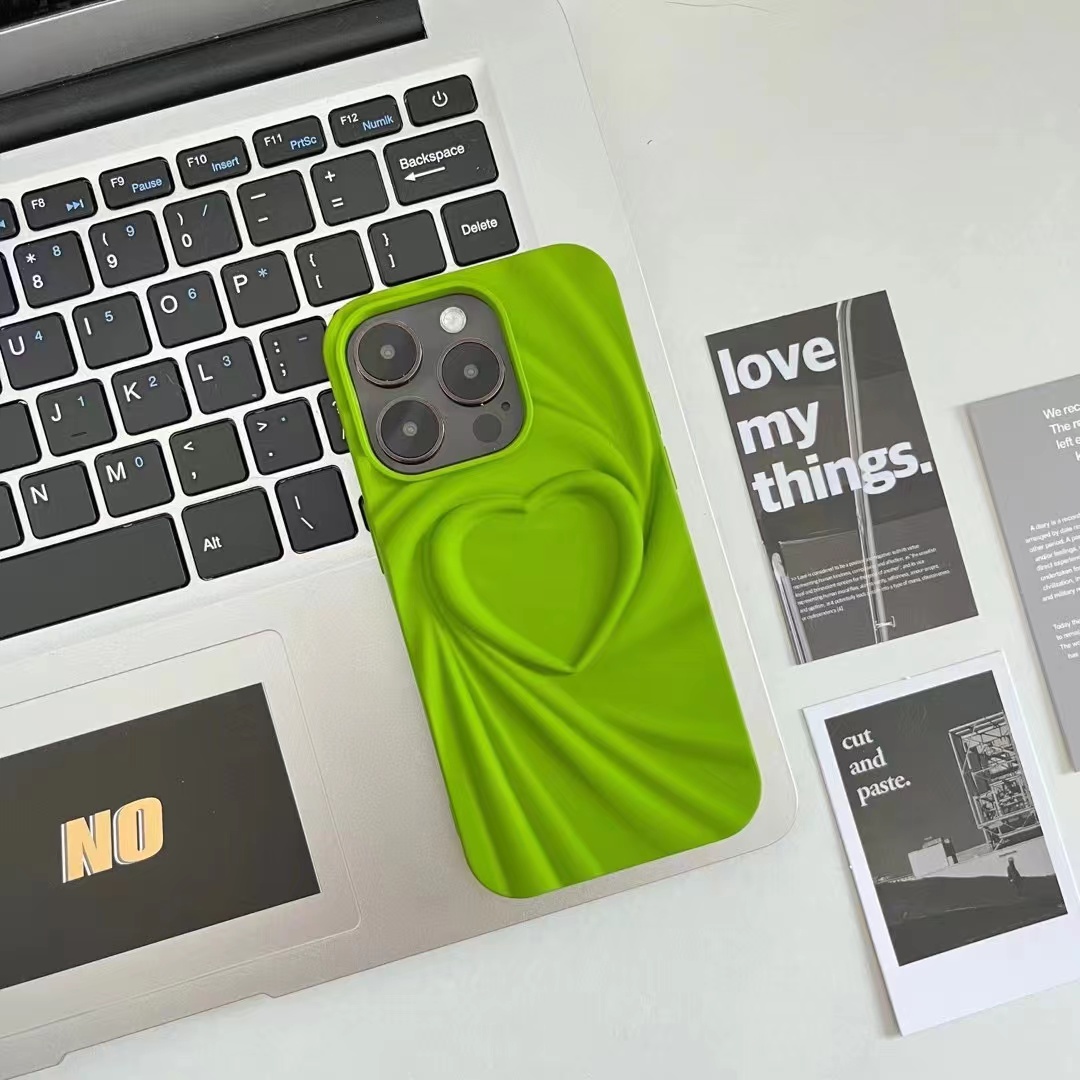 小眾ins芥末綠褶皺愛心適用iPhone14/13手機殼蘋果12promax簡約11軟防摔