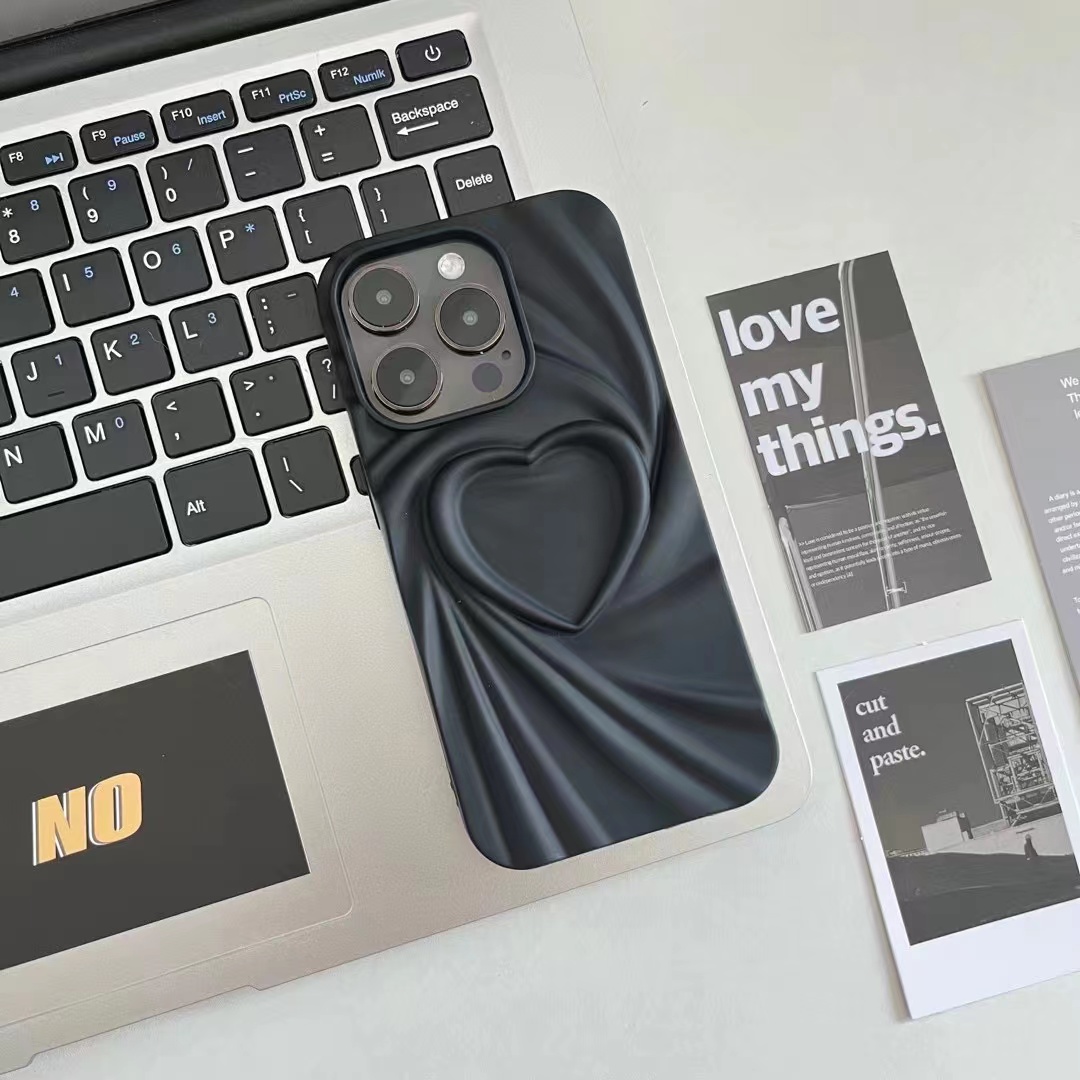 皺褶簡約愛心適用iphone14pro蘋果13手機殼11立體12pro小眾13promax全包防摔硅膠保護套女時尚輕奢網紅高級感