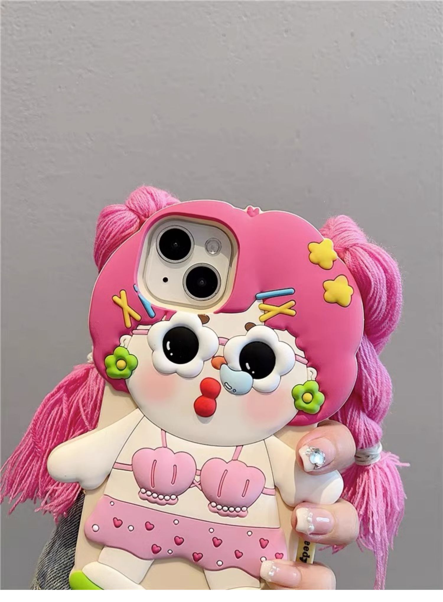 酷圖適用蘋果14手機殼新款iphone14promax卡通創意辮子鼻涕女孩13甜美網紅12全包硅膠防摔高級感11可愛小眾潮