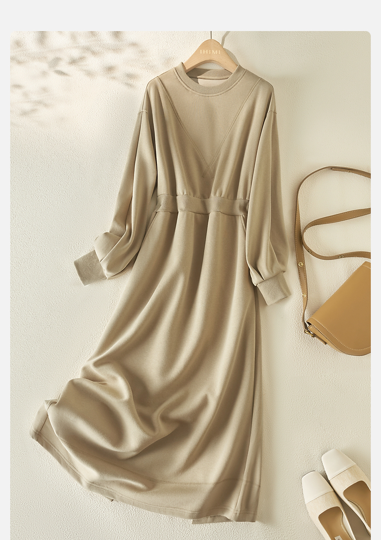 IHIMI海謐優雅衛衣裙百搭連衣裙女2023秋季新款長裙顯瘦內搭裙子
