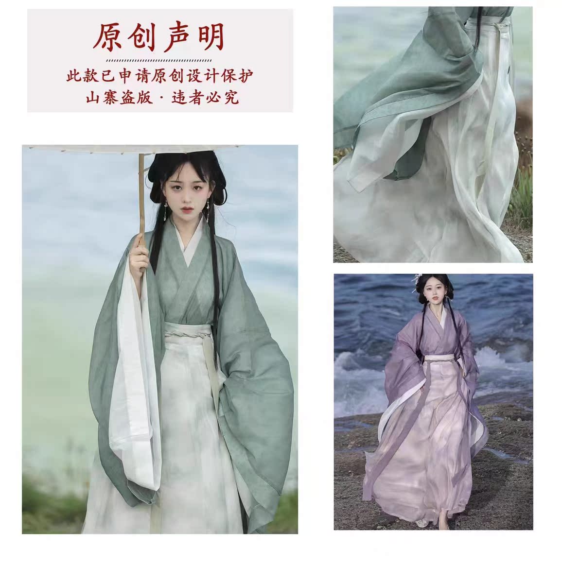 原創漢服女【詩野】魏晉制交領大袖衫印花中國風八破裙紫色古裝