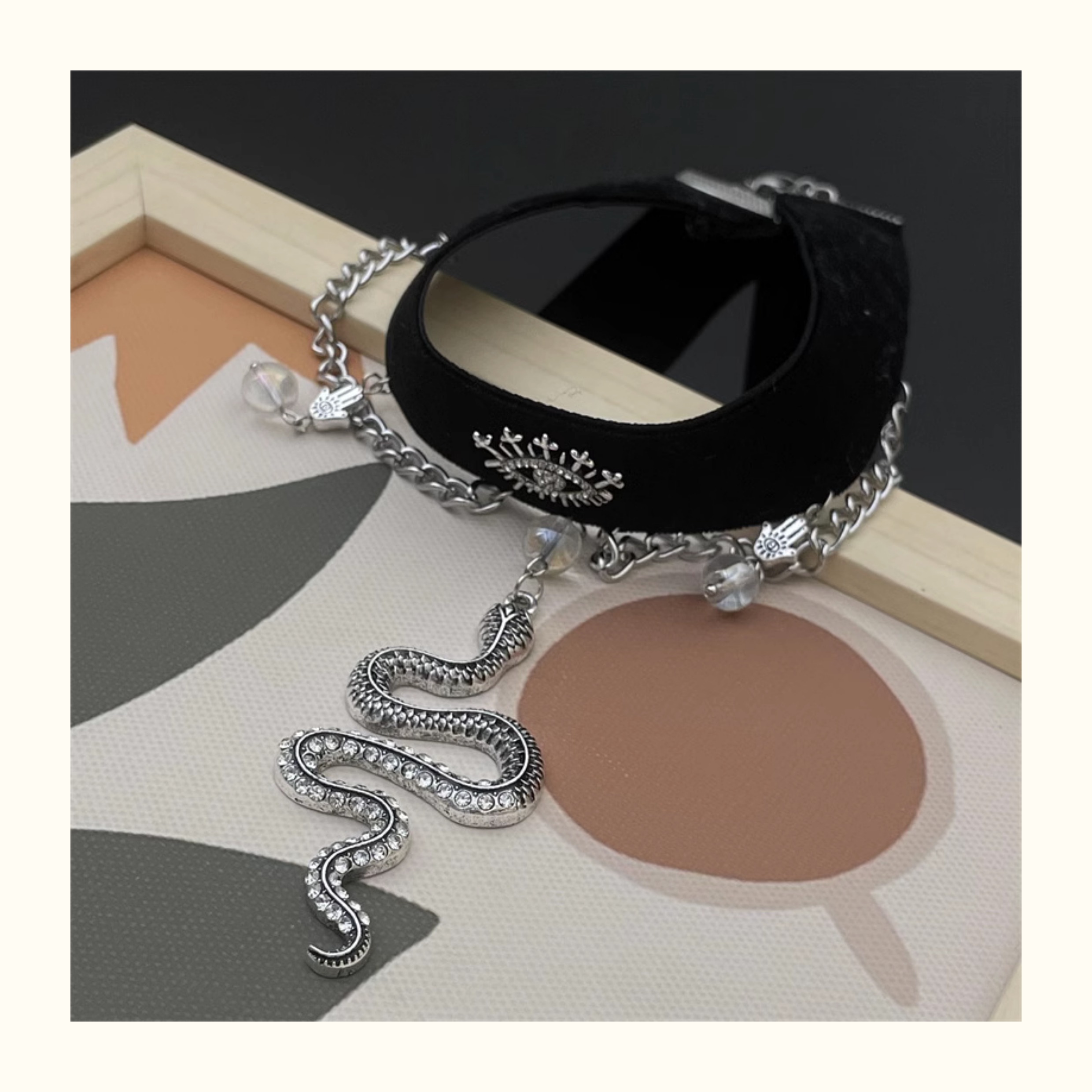 布藝流蘇小蛇項鏈小眾設計choker蛇形吊墜頸鏈鎖骨鏈暗黑氣質項圈