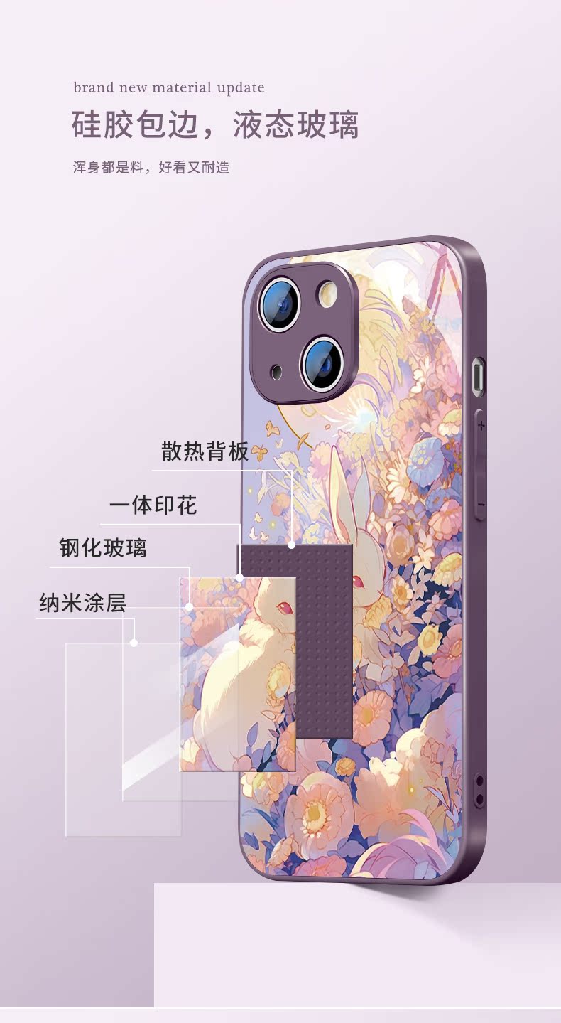 甲方適用于華為nova11pro玻璃手機殼蘋果14promax創意榮耀90卡通vivos17可愛兔子oppoa96防摔小米硬殼13pro