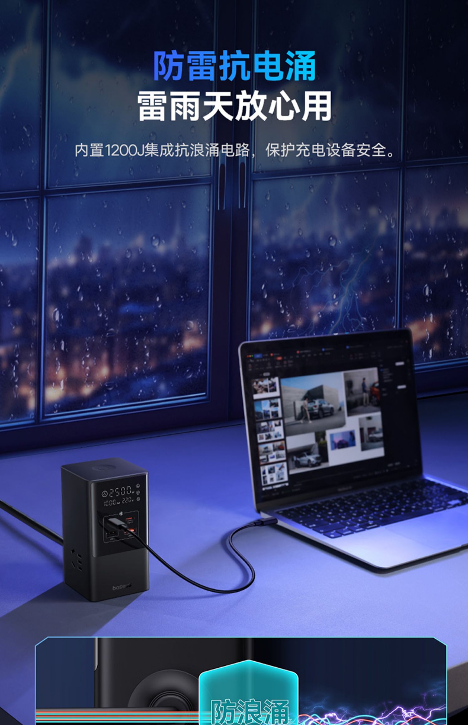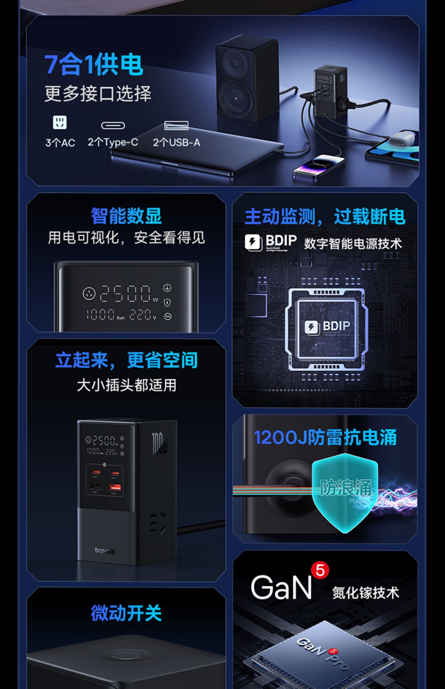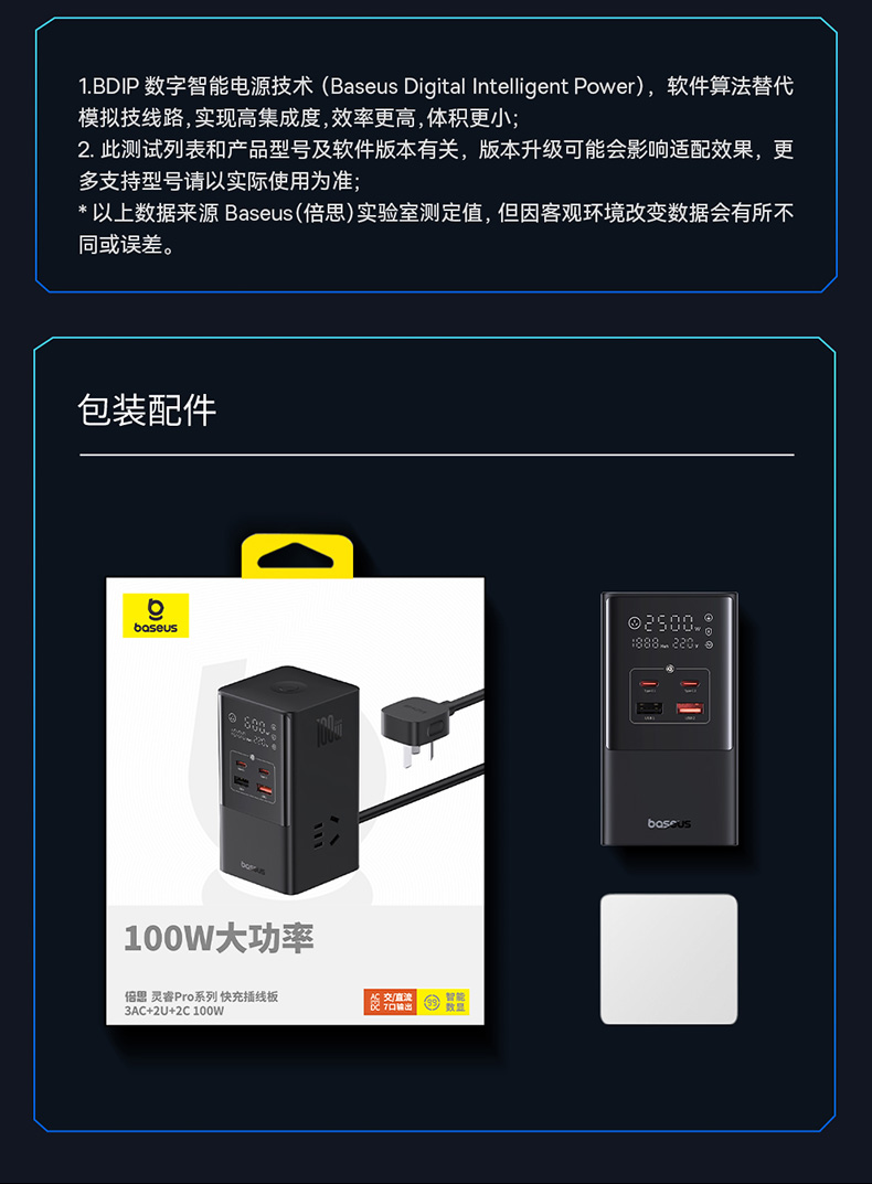 倍思100W智能數顯快充插座大功率桌面充電站多口插排USB排插辦公