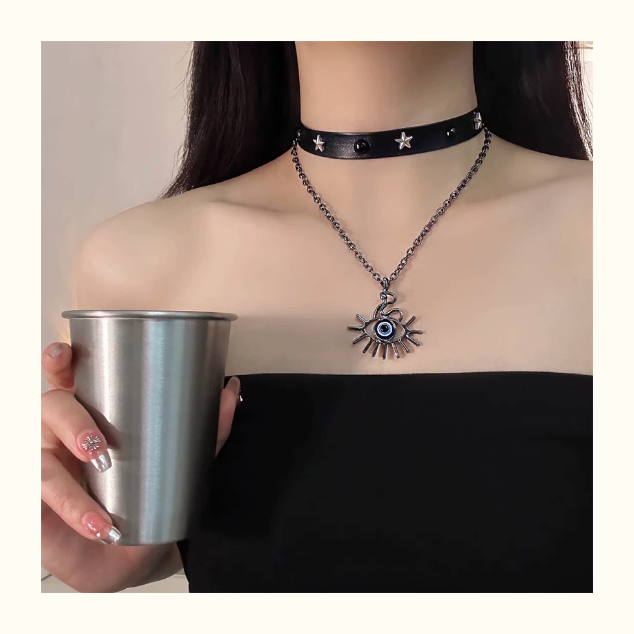 惡魔之眼項鏈小眾ins爆款鎖骨鏈簡約小眾冷淡風y2k脖子鏈女項圈