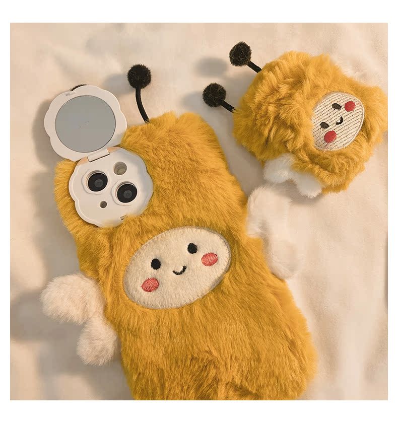 獨殼 卡通可愛小蜜蜂毛絨適用蘋果14ProMax手機殼秋冬款iphone13新款12小眾14pro女11防摔15硅膠13pro全包軟