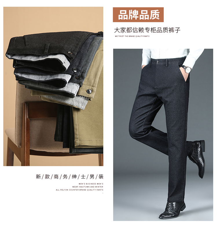 羅蒙男士西褲春秋款冬季直筒黑色男正裝褲子商務休閑加絨西裝褲