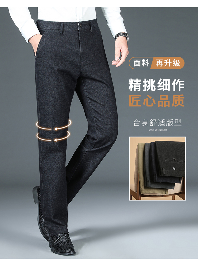 HLA/海瀾之家輕商務直筒休閑褲秋冬季新款加絨加厚可選長褲子男士