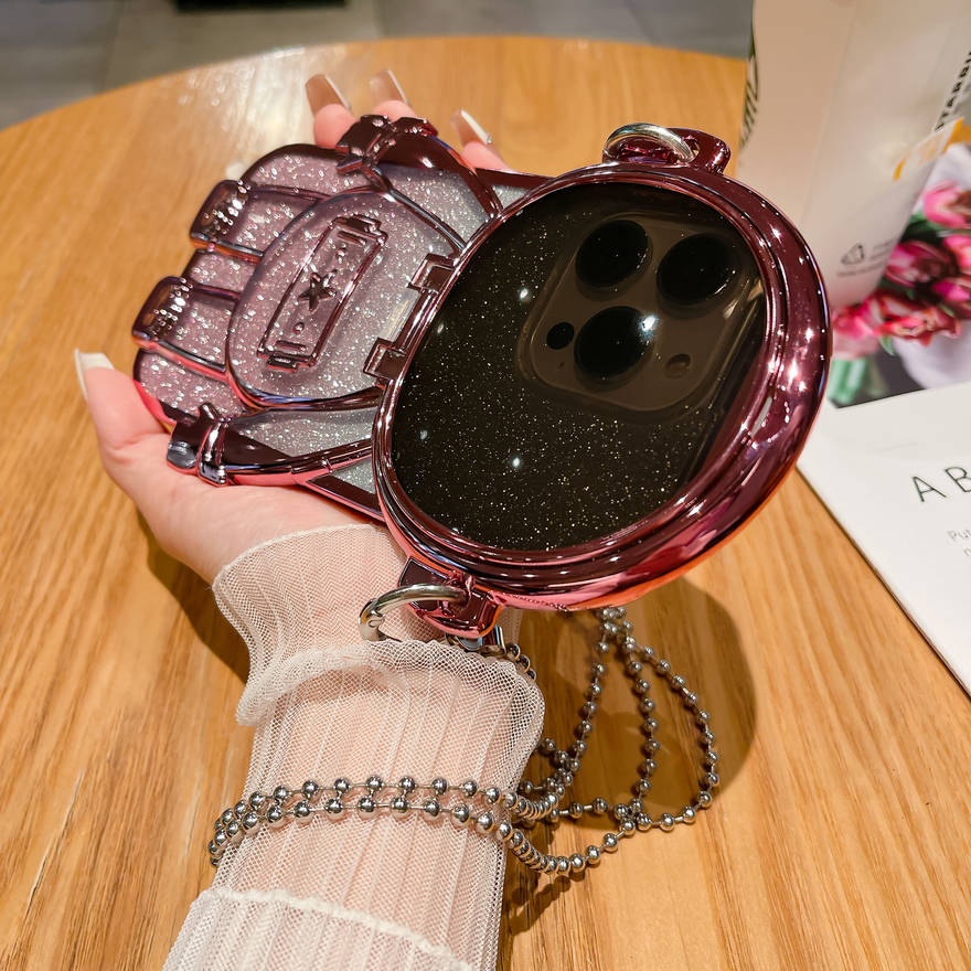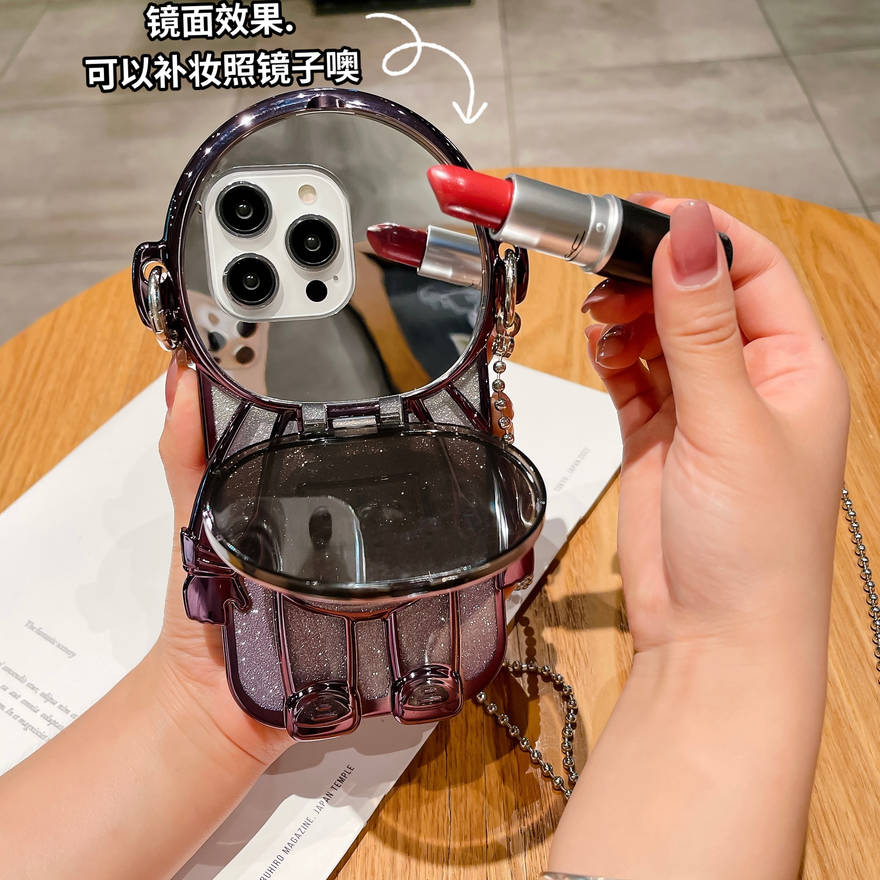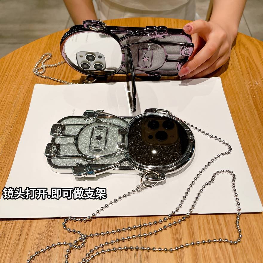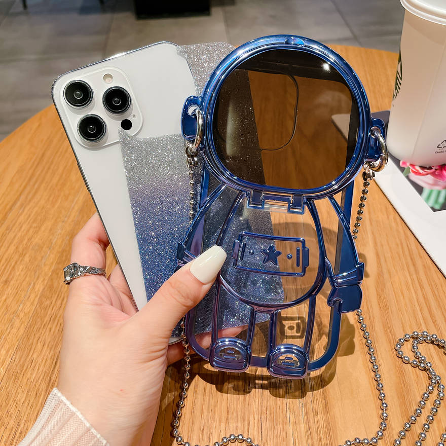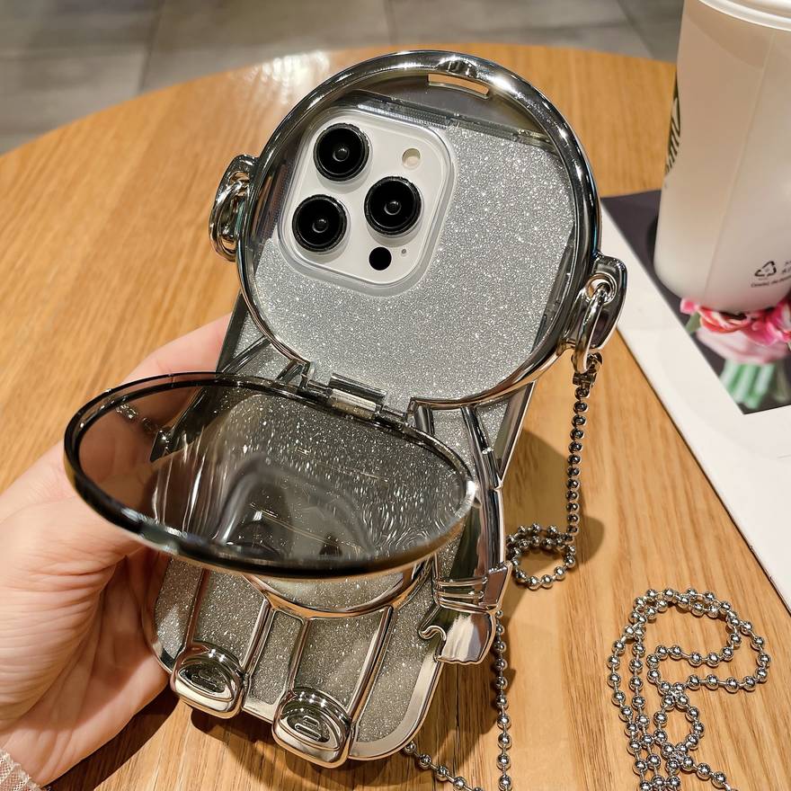 新款宇航員支架適用iPhone14promax新款鏡面蘋果14手機殼全包防摔13pro補妝鏡12女11斜挎繩13時尚14pro高級感
