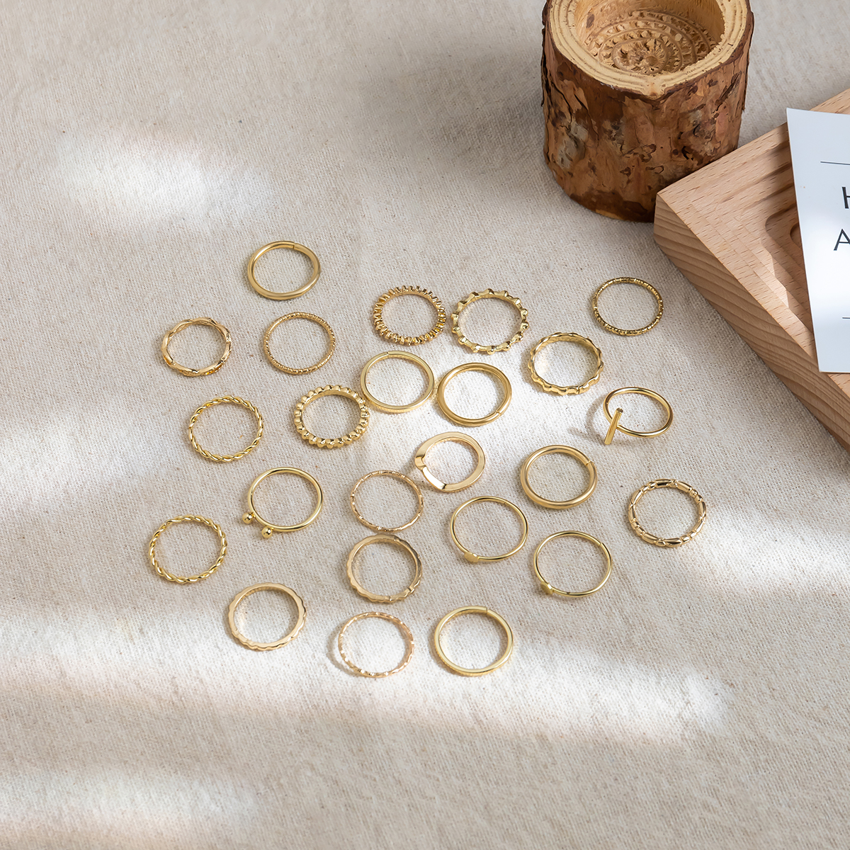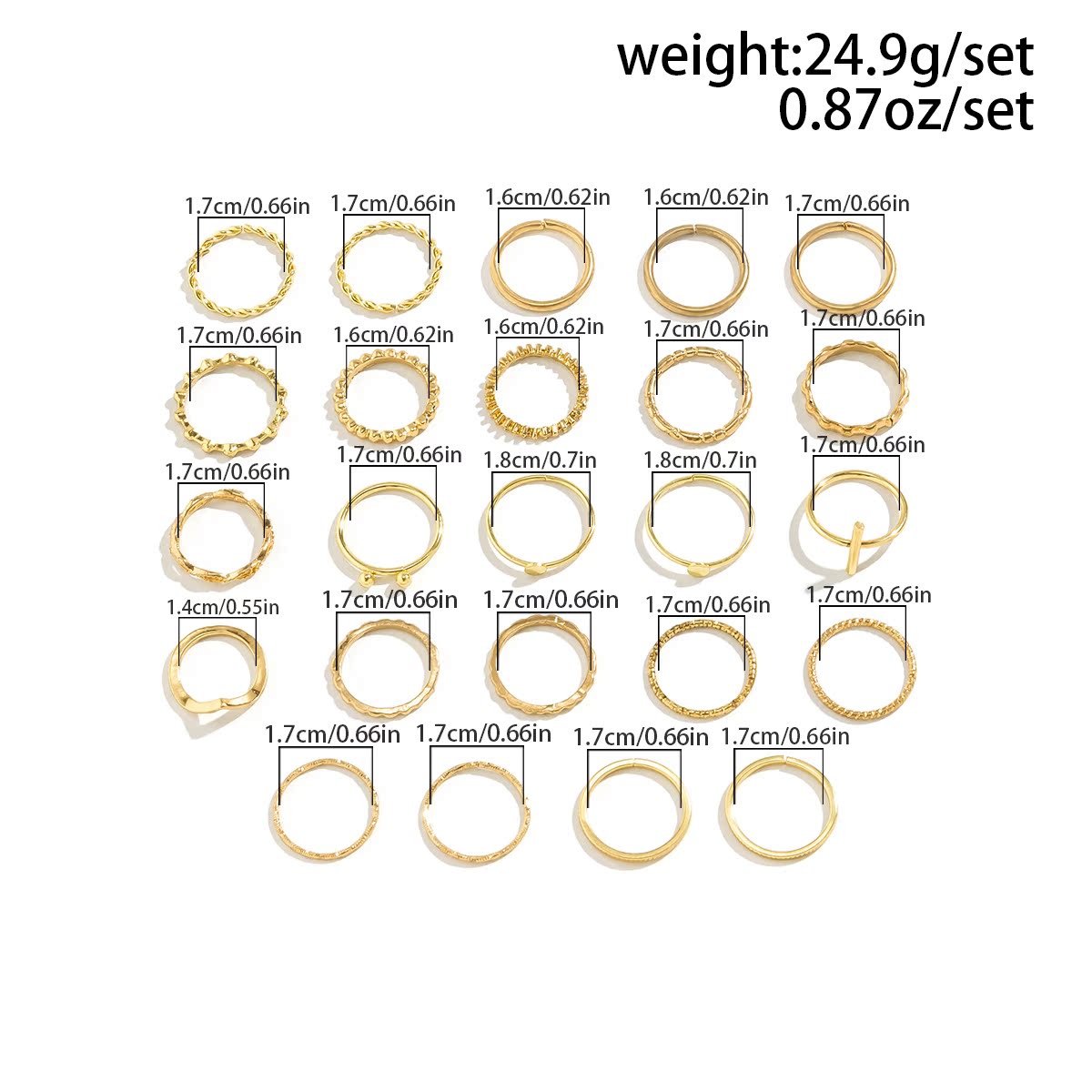 24件套簡約金屬圈圈戒指套裝 歐美秋季新款時尚百搭日常搭配指環