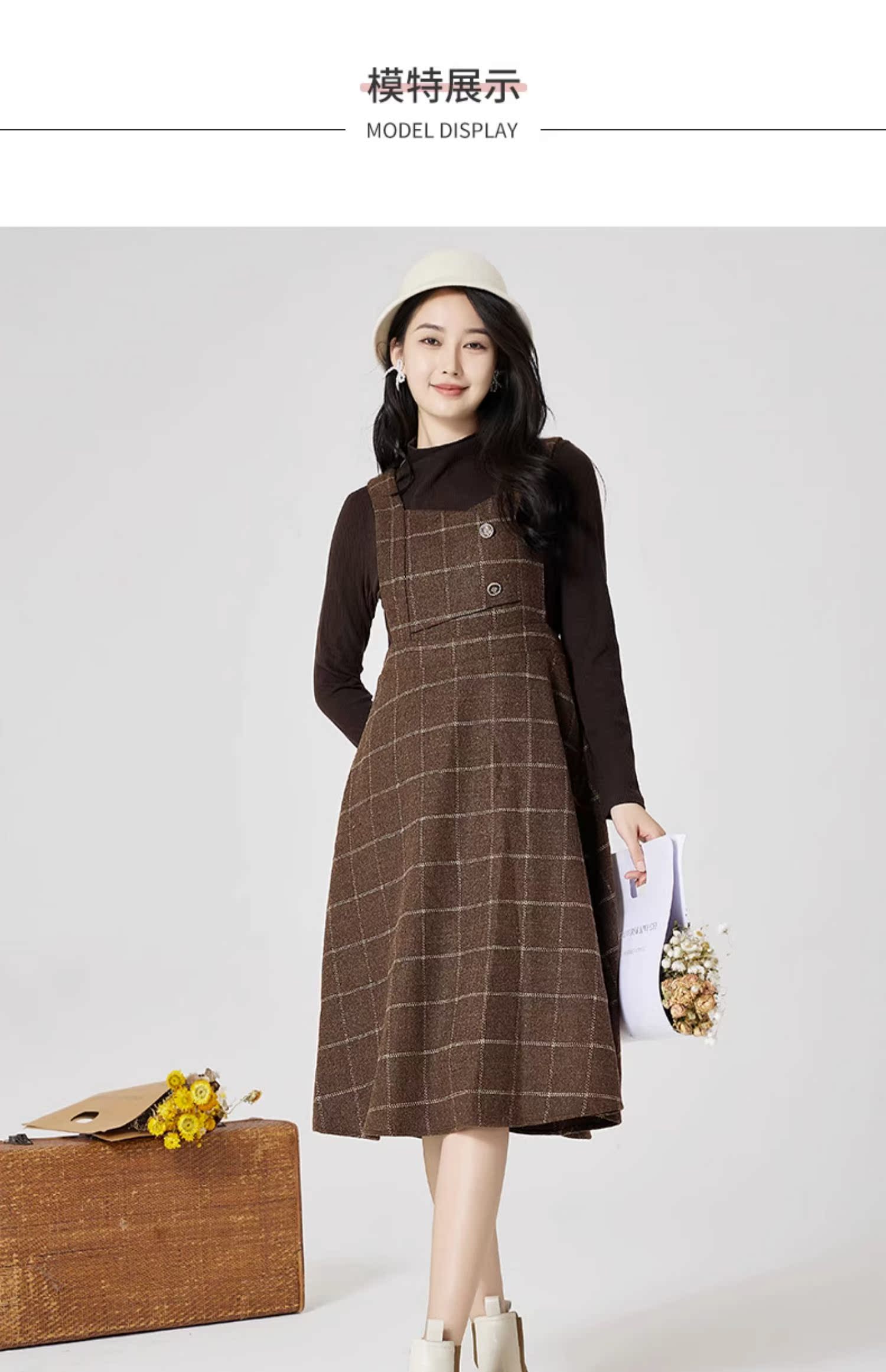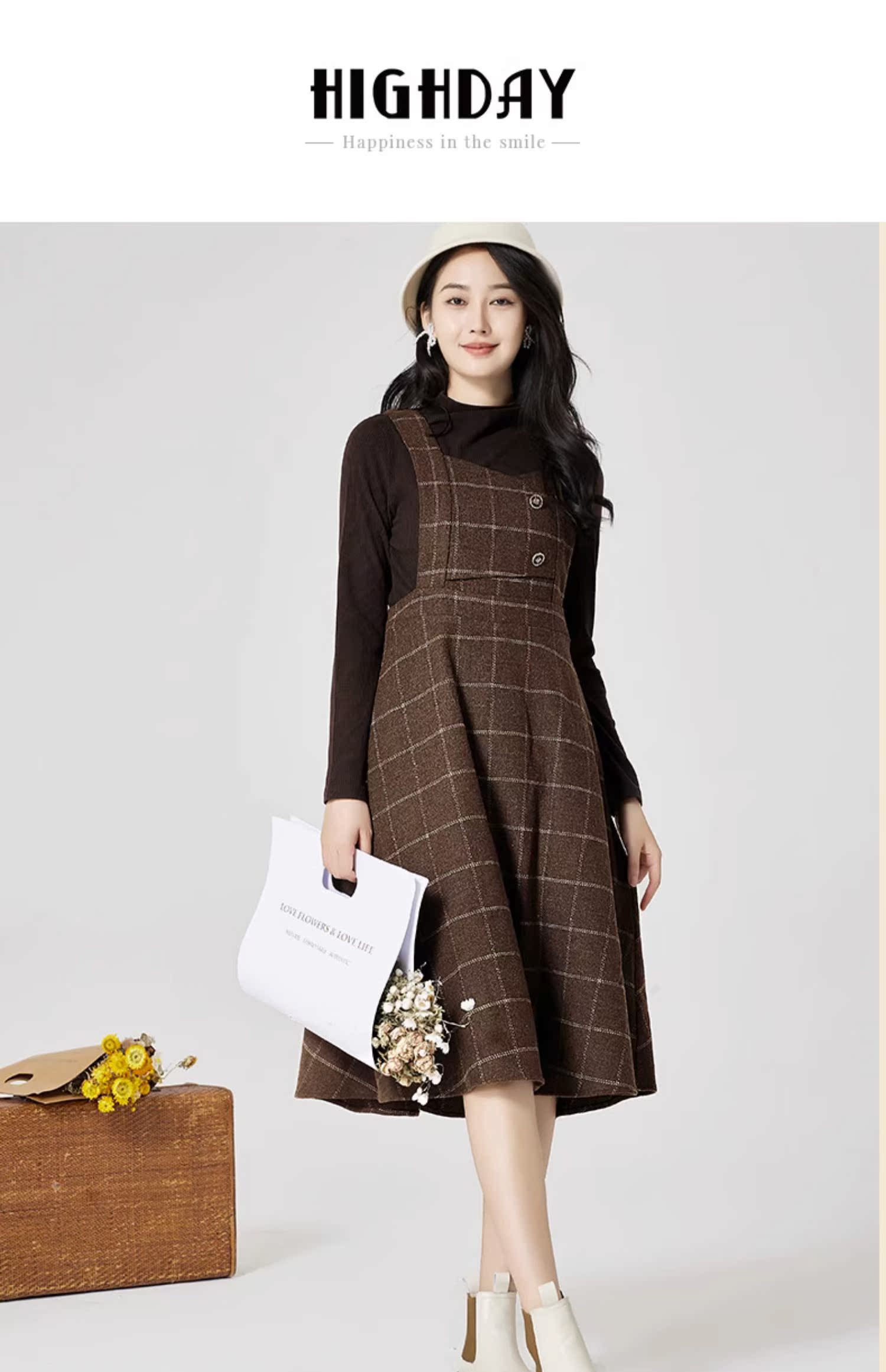 highday軒日2023冬季新復古格紋修身背帶裙女氣質過膝無袖連衣裙