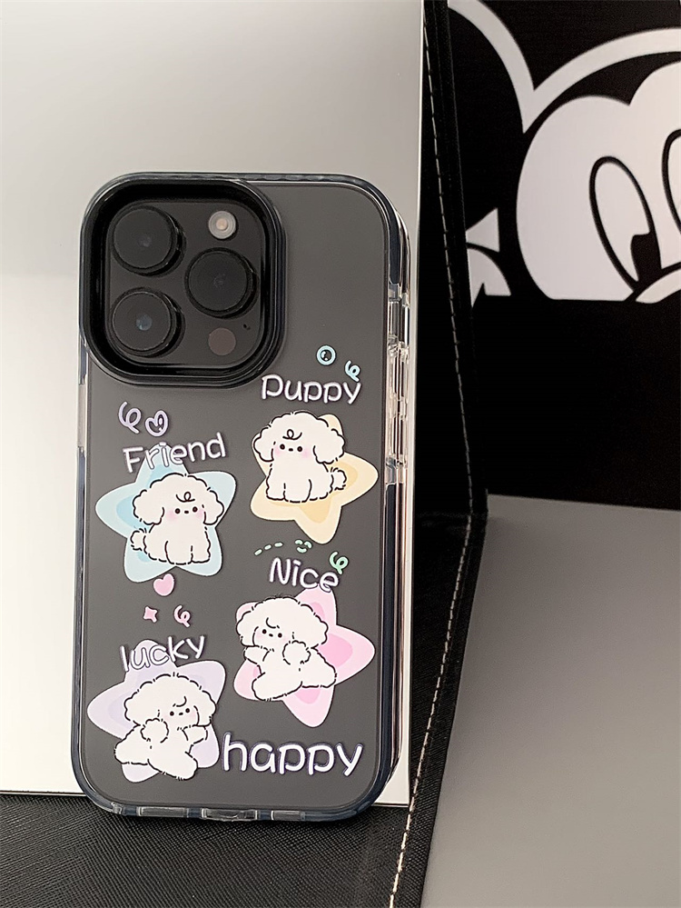 韓國新款星星萌寵狗狗手機殼適用蘋果iphone14promax小眾13promax黑邊防摔15創意13高級感14pro女x個性14情侶
