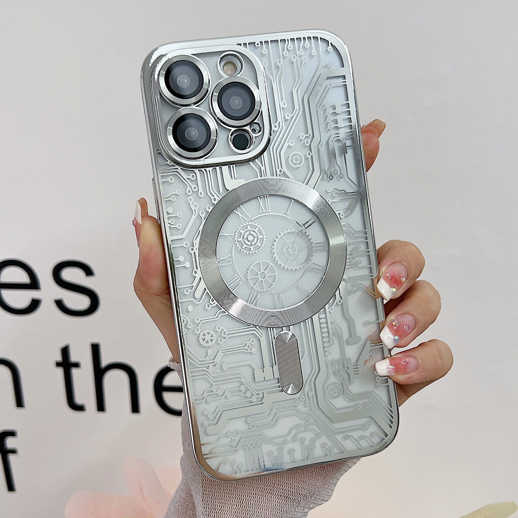磁吸magsafe適用蘋果15promax手機殼15pro新款iPhone13無線充電14pm透明機械表硅膠軟12簡約11高級感男pm潮牌