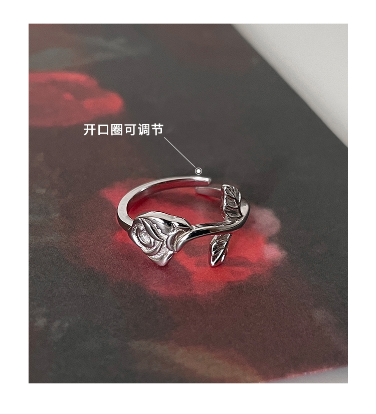 925純銀玫瑰戒指女小眾設計高級感精致復古食指戒指環個性銀手飾