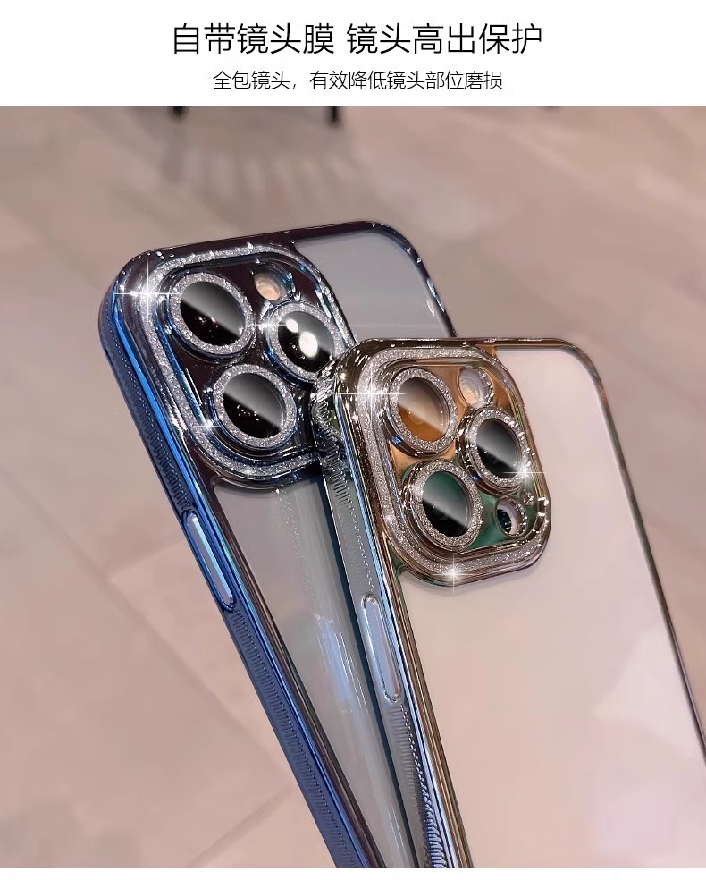 自帶閃粉鏡頭膜蘋果14promax手機殼新款iPhone15Pro全包防摔13pro透明奢華plus硅膠保護套ip12pm網紅女pro潮