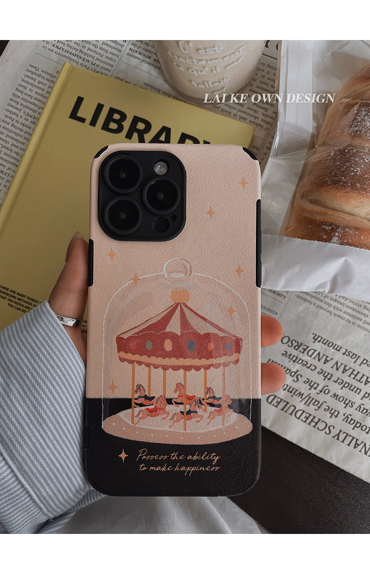要快樂!原創旋轉木馬防摔手機殼適用蘋果15promax/14華為mate50P60榮耀90全包軟殼小米13iqoo