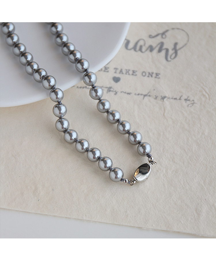 高級感灰色珍珠元寶扣項鏈女輕奢小眾復古個性簡約時尚頸鏈鎖骨鏈