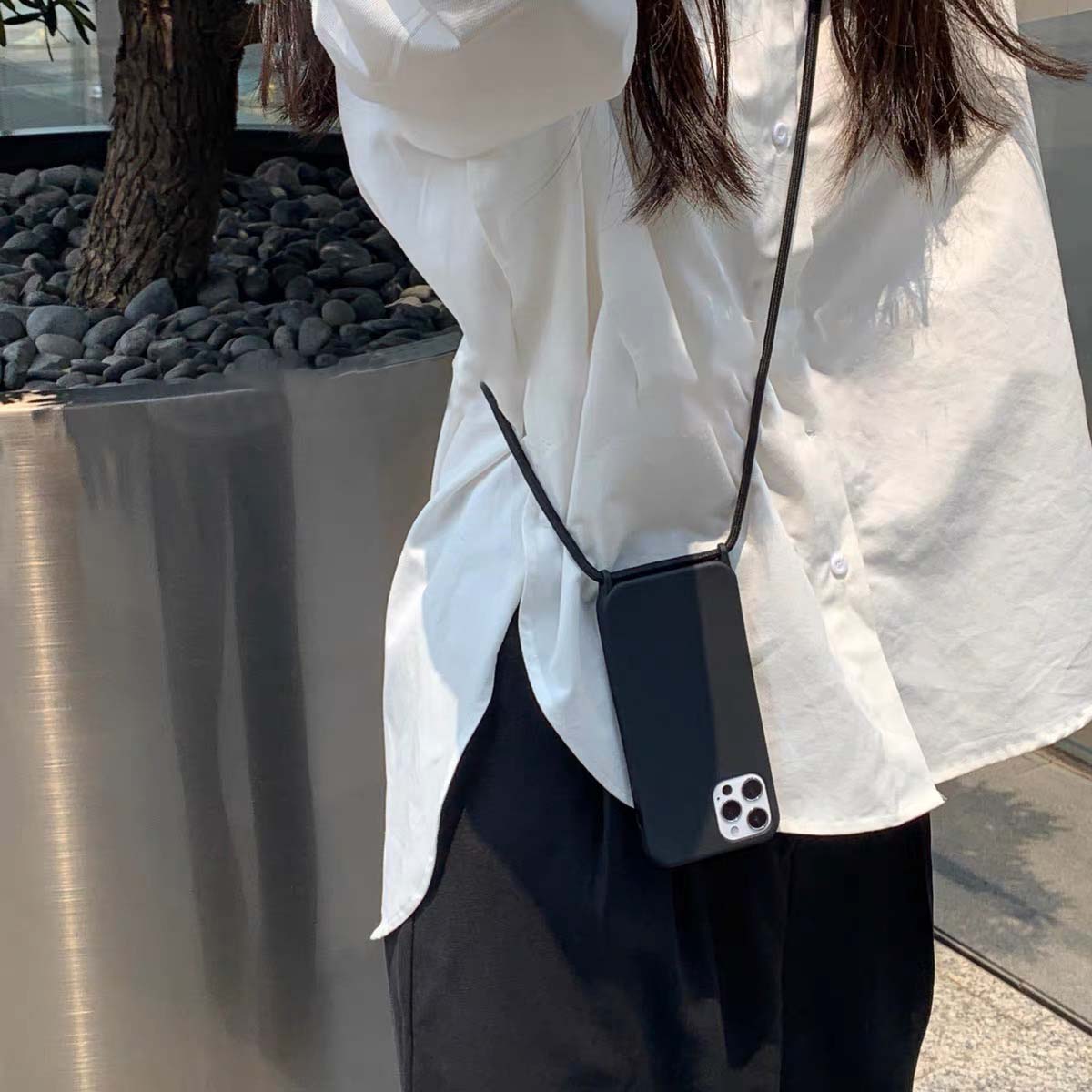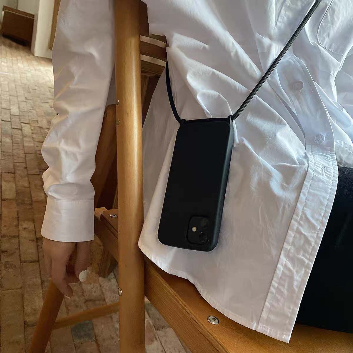 ins風液態硅膠蘋果14純色掛繩背帶適用iPhone13ProMax手機殼12斜挎11情侶xr/7/8plus個性SE全包mini防摔xsmax