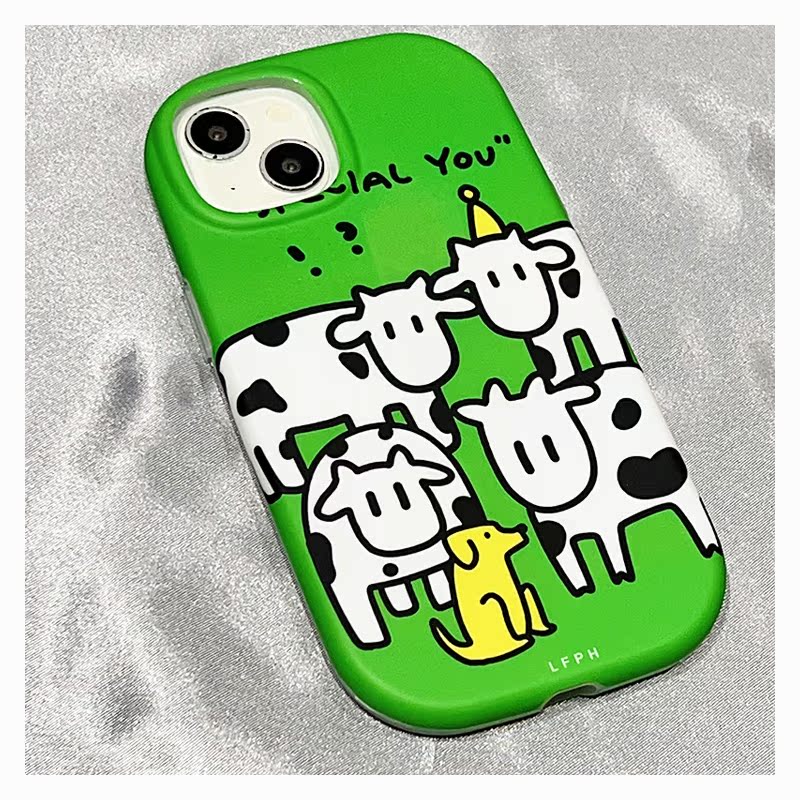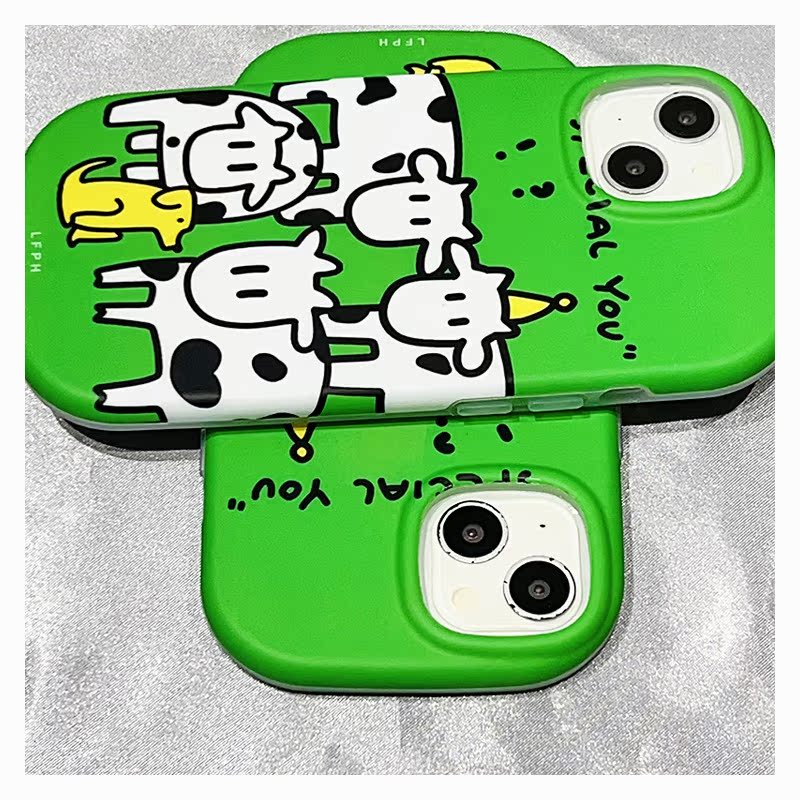 綠色卡通黃狗奶牛適用蘋果14promax手機殼iphone13女款14pro新款12趣味創意可愛潮11硬殼13pro防摔15pro硅膠