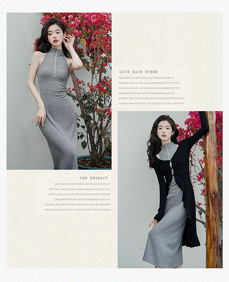 新中式清冷女裝性感針織連衣裙修身氣質露肩旗袍高級感老錢風好看