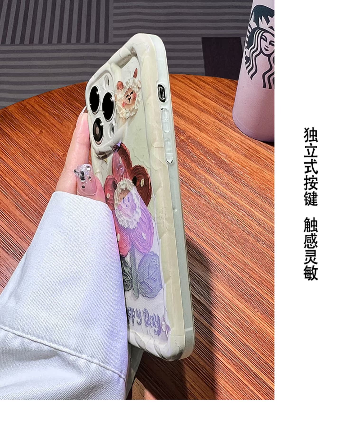 油畫黃色花朵適用蘋果14promax手機殼新款iphone13pro藍光硅膠軟殼ip12郁金香網紅女11por全包防摔潮pm保護套