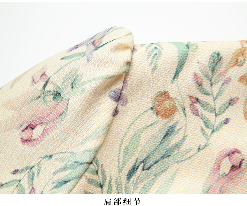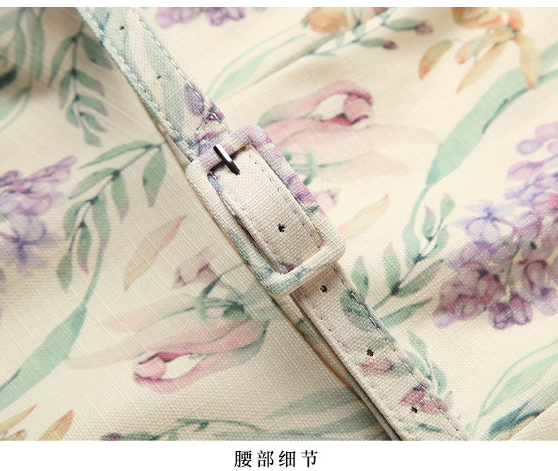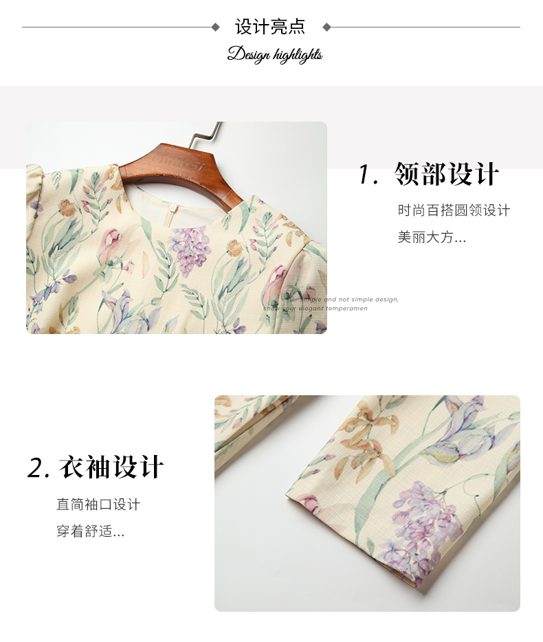 茗思七分袖印花連衣裙女秋季2023新款氣質法式收腰顯瘦小個子裙子