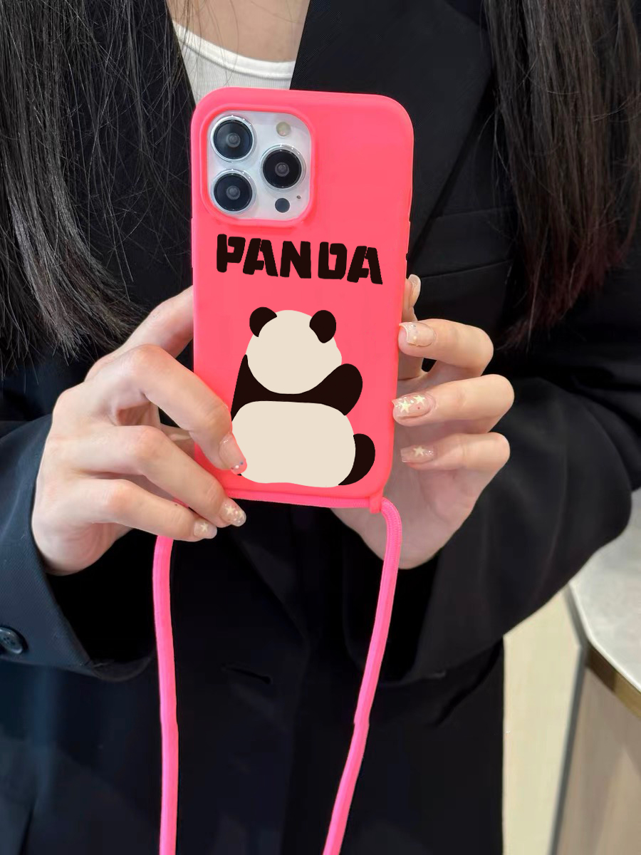 芭比熊貓手提斜挎適用蘋果13手機殼iphone14promax卡通可愛外殼12新款掛繩全包鏡頭保護套11女款防摔手機套