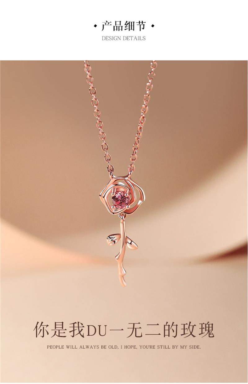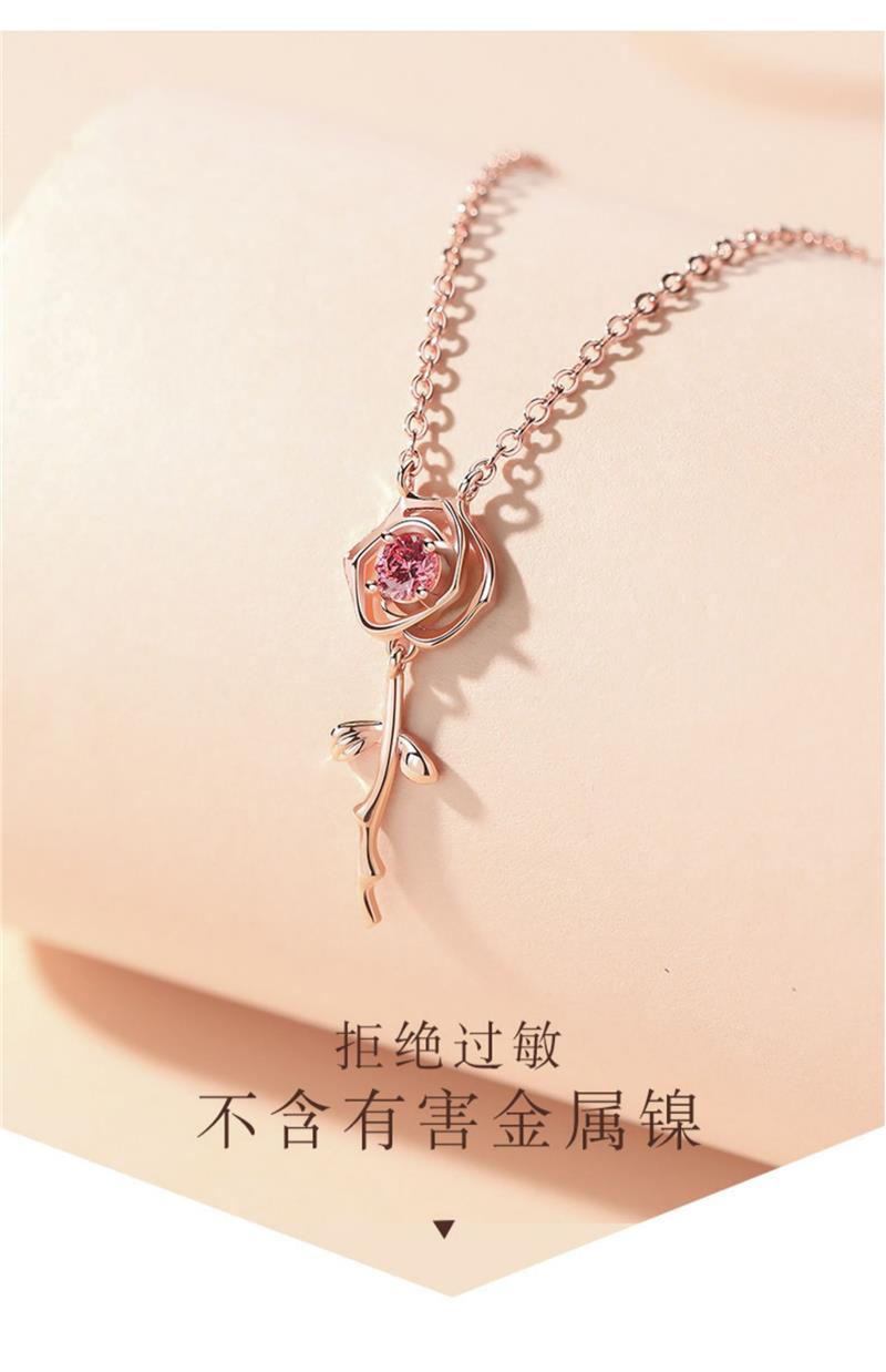 999足銀小王子玫瑰花項鏈女生2023年新款小眾輕奢吊墜送女友禮物