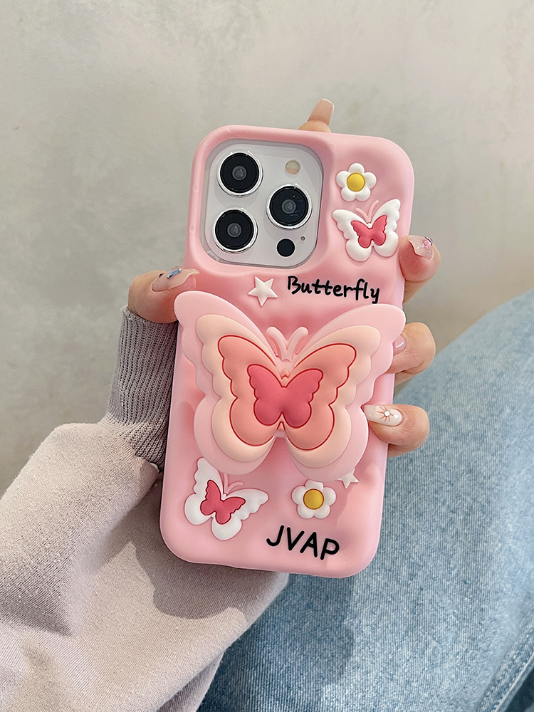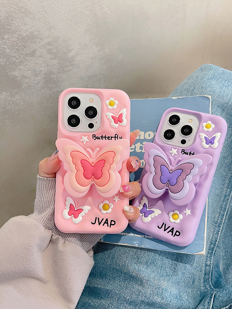 日韓ins粉色蝴蝶折疊支架適用iphone14pro手機殼13promax蘋果12女x高級感xr創意xs小眾max可愛xsmax保護套11