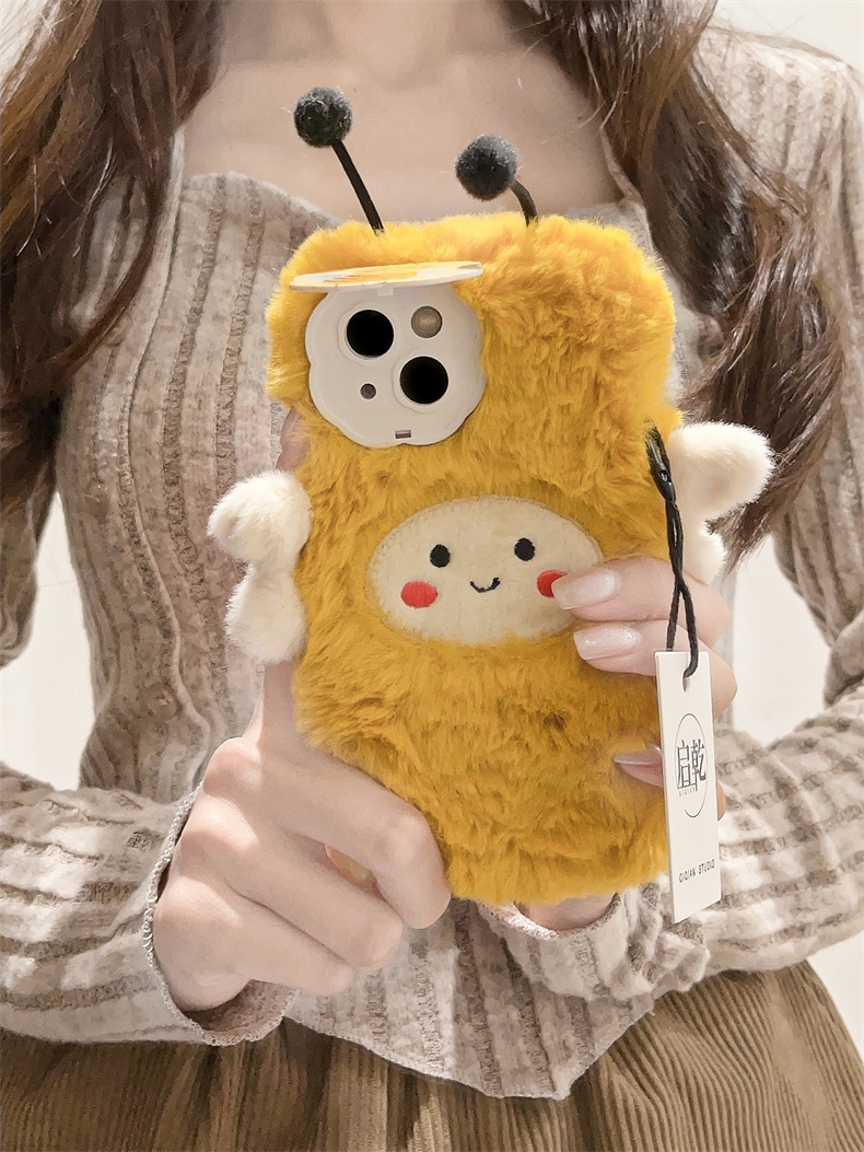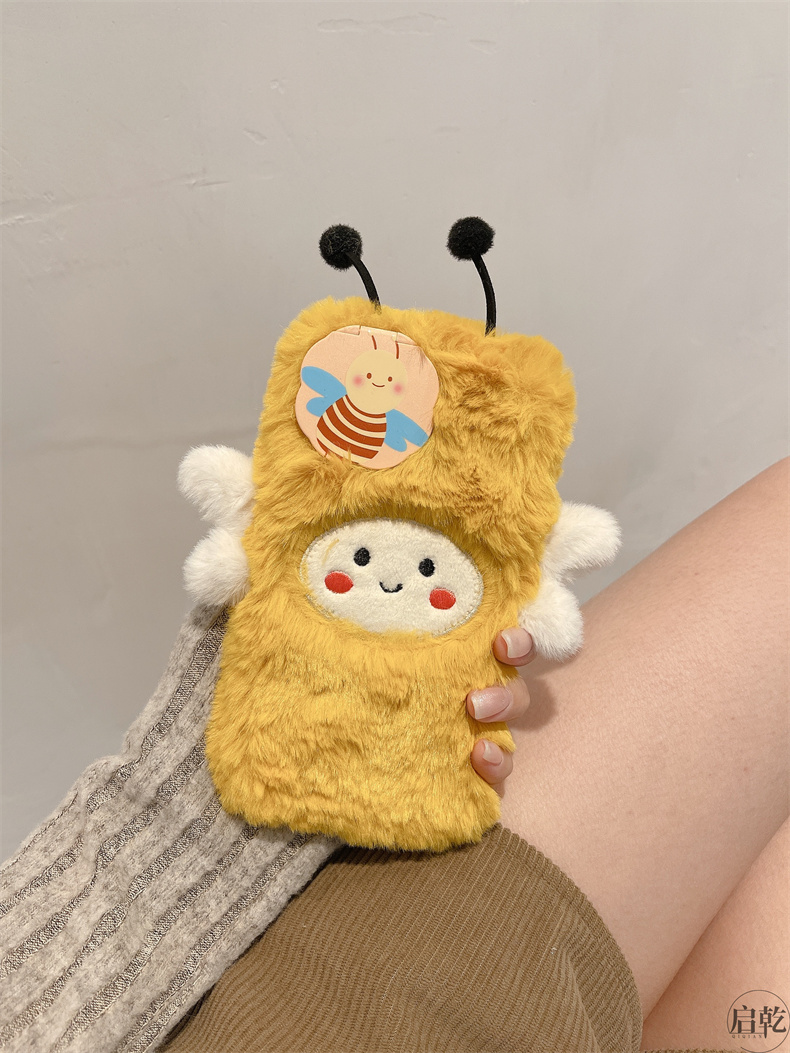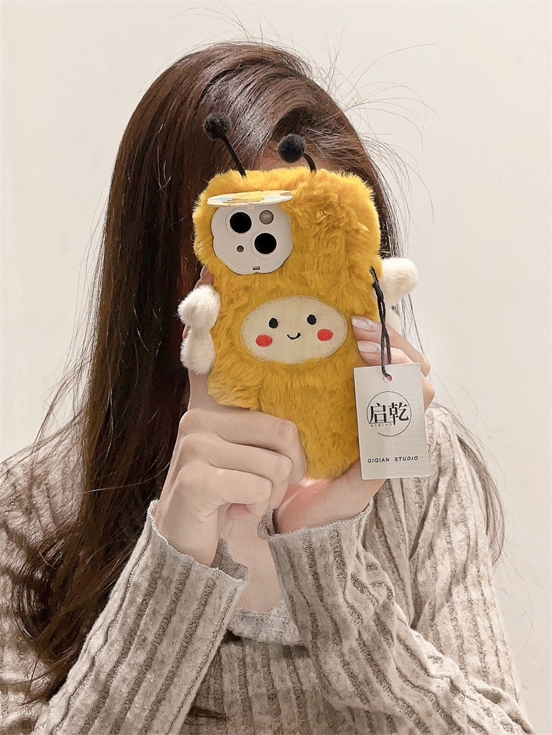 ins秋冬立體毛絨可愛小蜜蜂適用蘋果13手機殼新款iphone14promax高級感12/11女13promax全包防摔14pro手機套