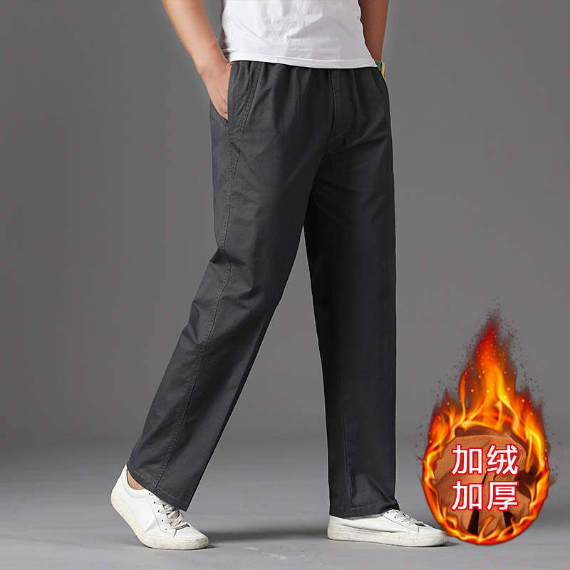 爸爸褲子純棉中年男士休閑褲男春秋男褲冬季寬松中老年人秋裝長褲