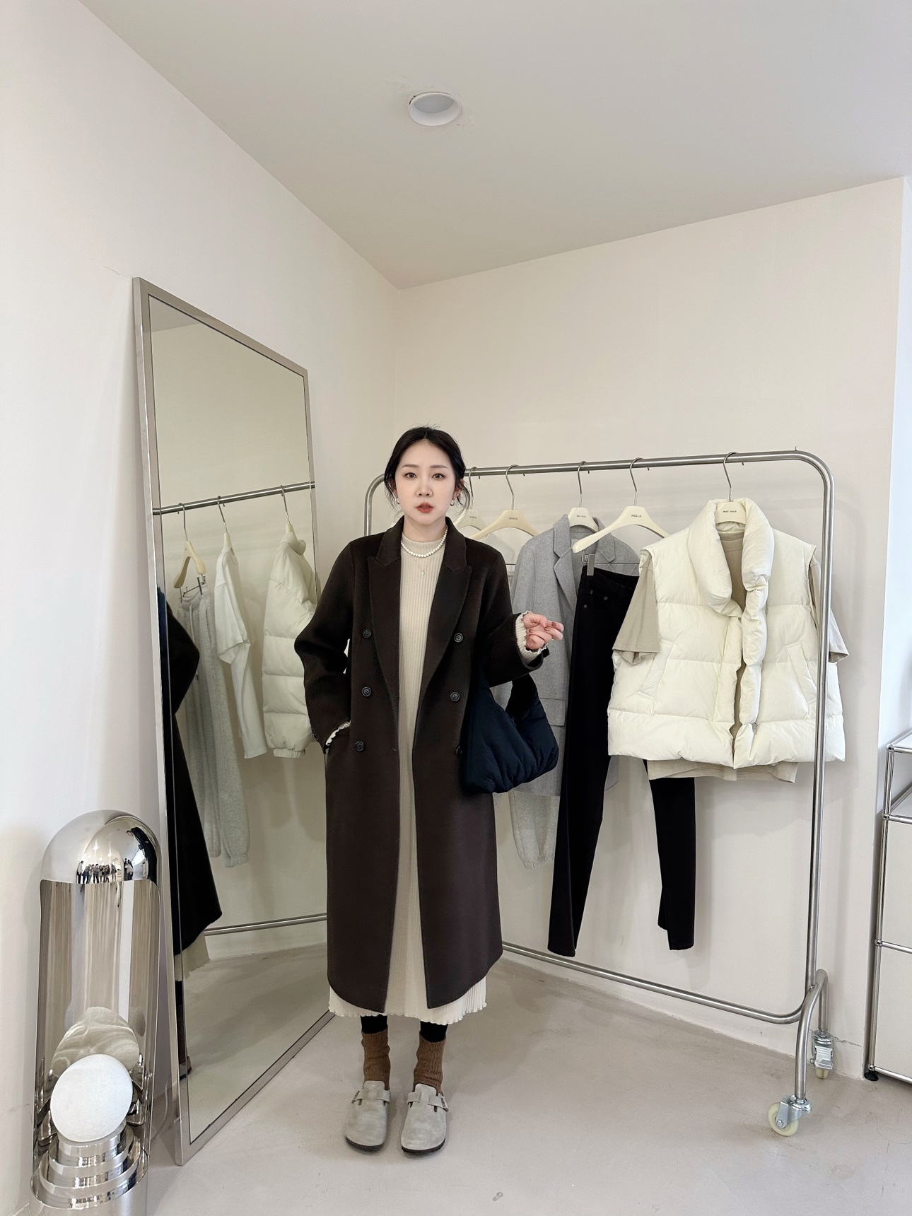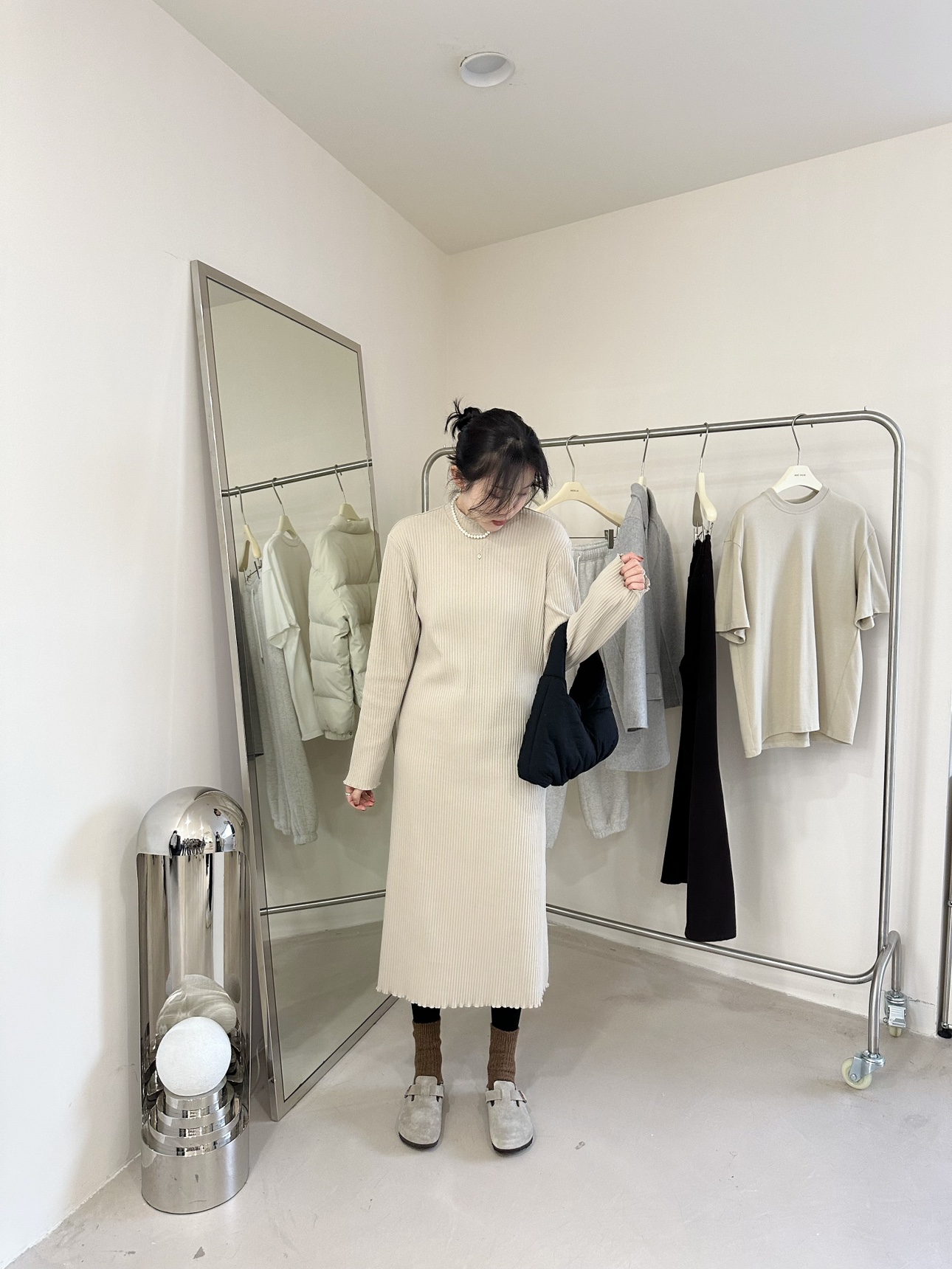 23秋裝 韓國ulzzang新款純色后開叉寬松垂感顯瘦空氣棉連衣裙長裙