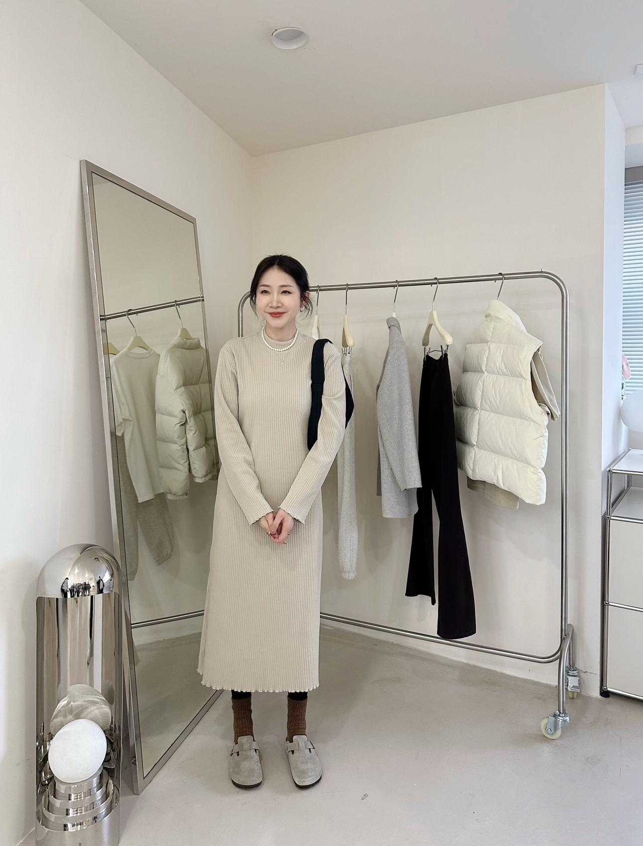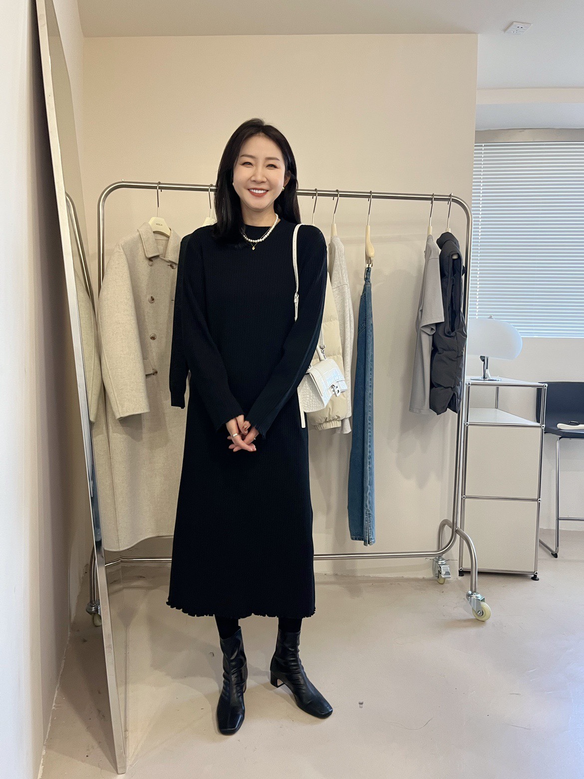 g d黑色細針織長袖連衣裙直筒裙子