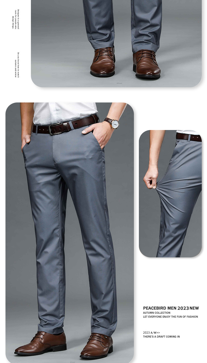 羅蒙秋冬新款竹纖維男士商務休閑褲修身彈力抗皺長褲直筒中年男褲