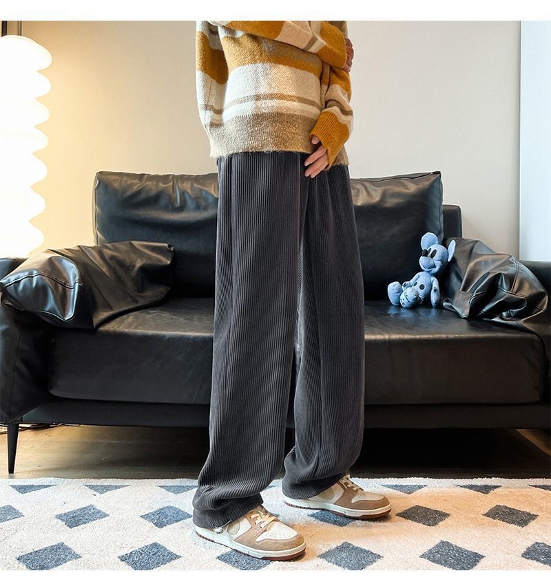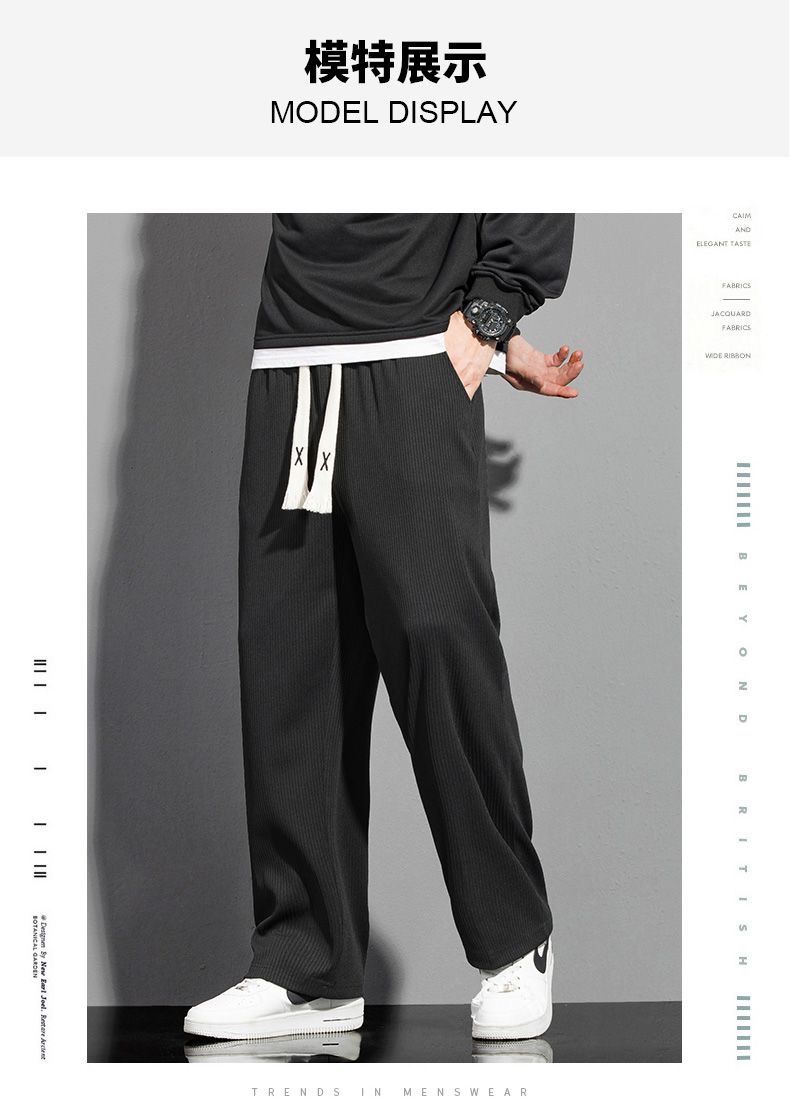燈芯絨褲子男春夏季ins潮牌垂感寬松直筒闊腿休閑抽繩運動長褲男