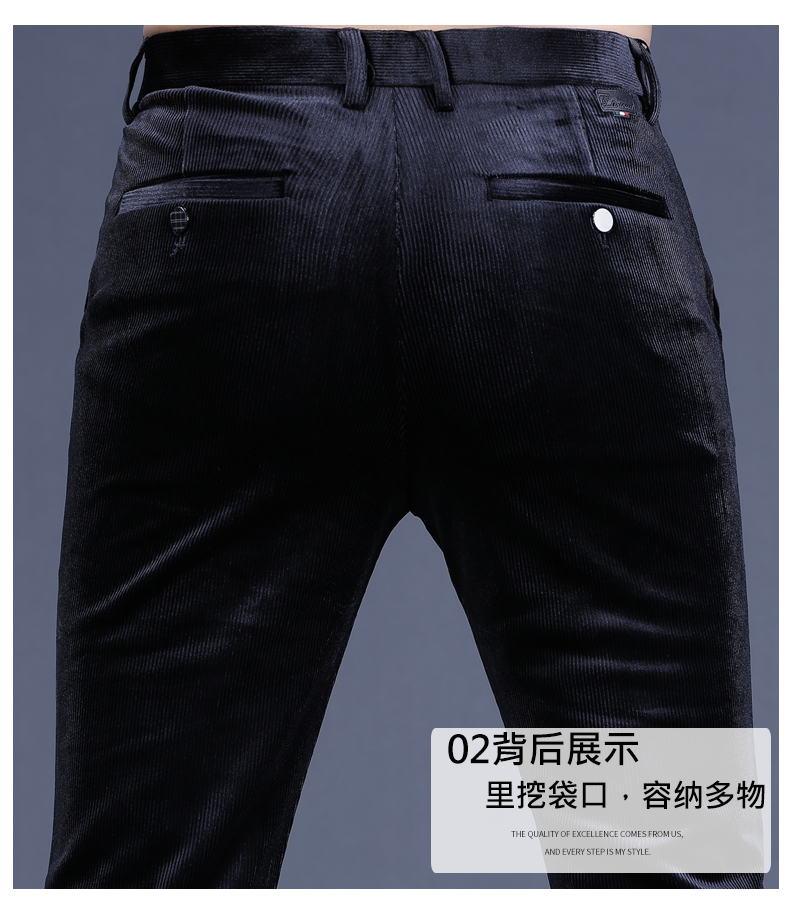 秋季男士燈芯絨休閑褲潮流彈力條絨褲子男修身直筒黑色男裝長褲