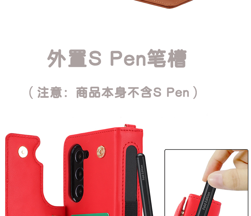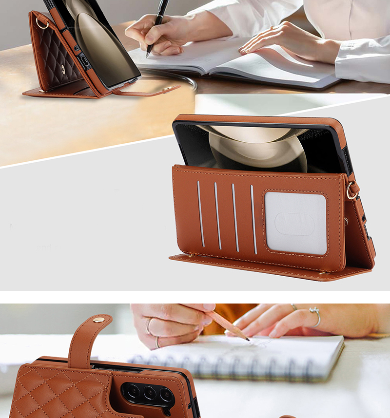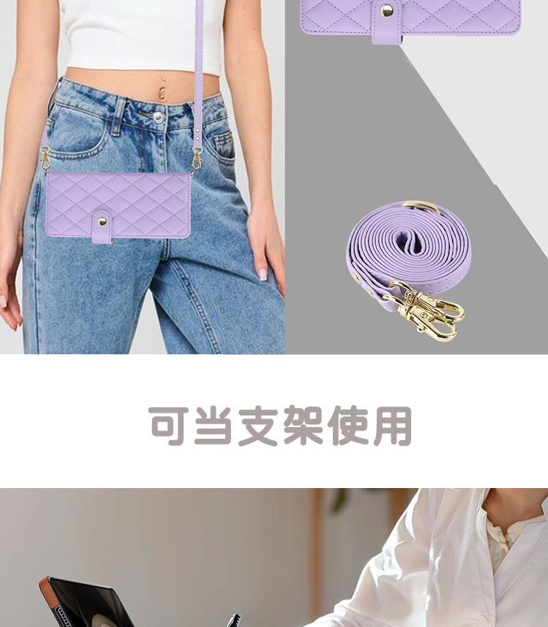 新款適用三星zfold5手機殼斜挎長背帶zfold4手提掛繩鏈條W23奢華皮質支架zfold3零錢包w22全包防摔時尚筆槽女