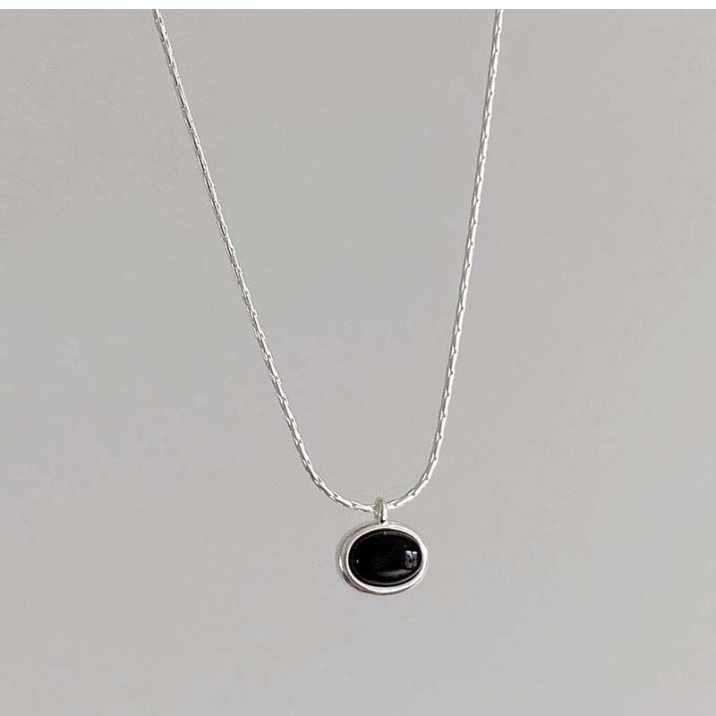 韓版簡約小眾黑瑪瑙幾何橢圓吊墜項鏈女百搭飾品精致高級感鎖骨鏈